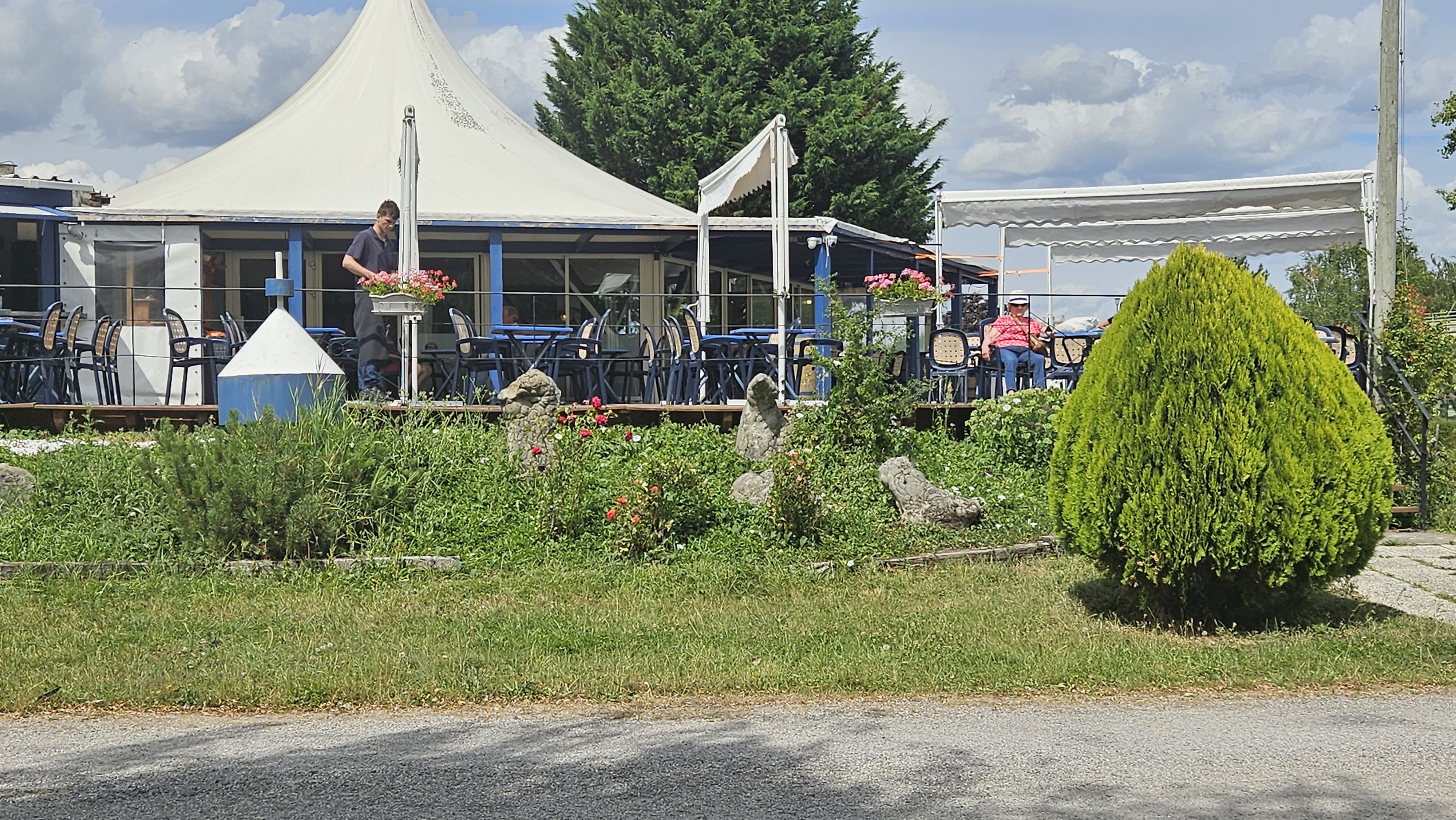 Très bonne accueil , une superbe terrasse . Menu entrée plat fromage dessert vin rouge Vin blanc apéritif très bon rapport qualité prix