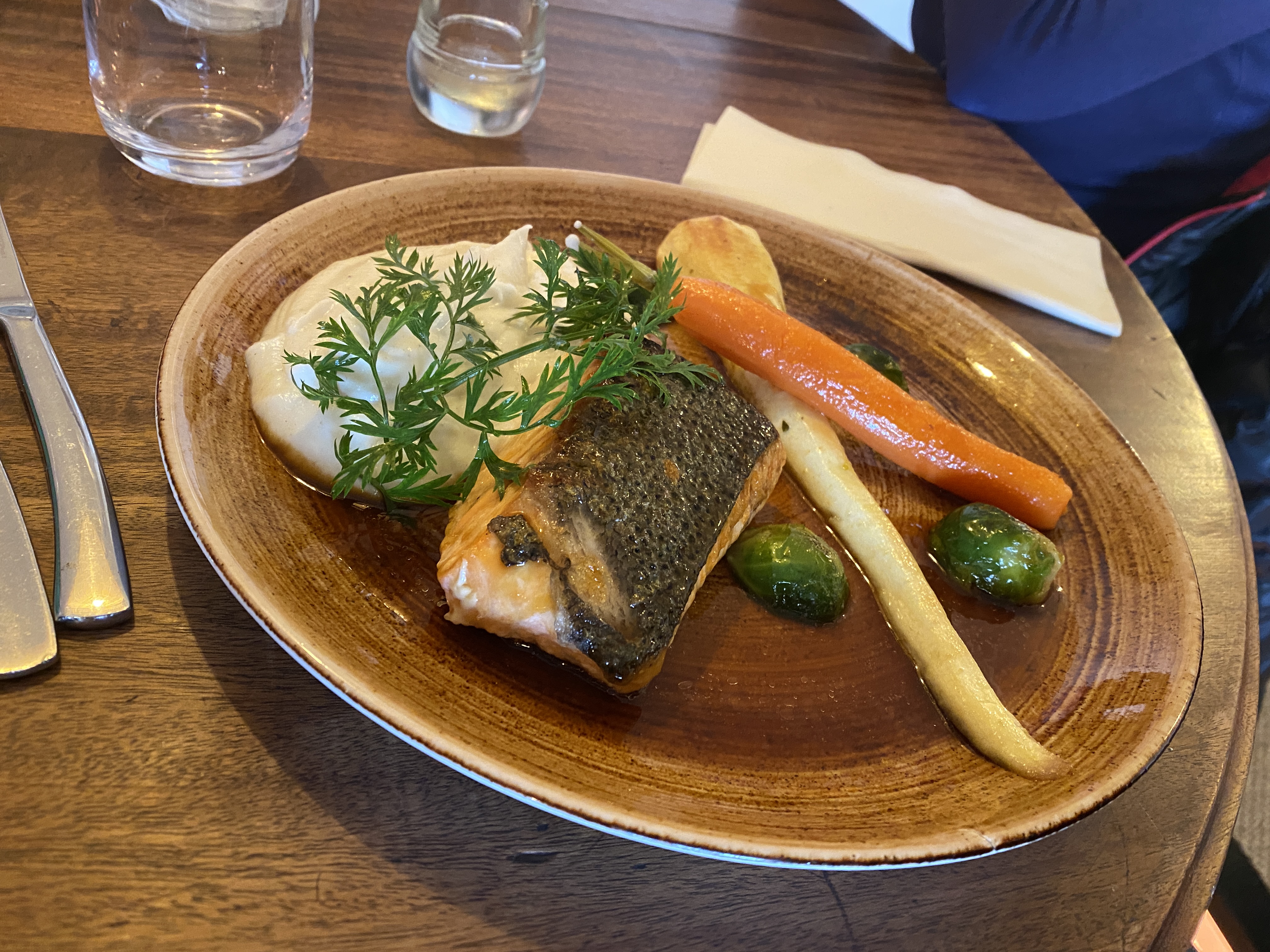 Très petite portion de saumon et de pâtes… Sinon équivalent à un restaurant d’entreprise (cantine)… Sans plus.. heureusement le pain est servi à volonté…