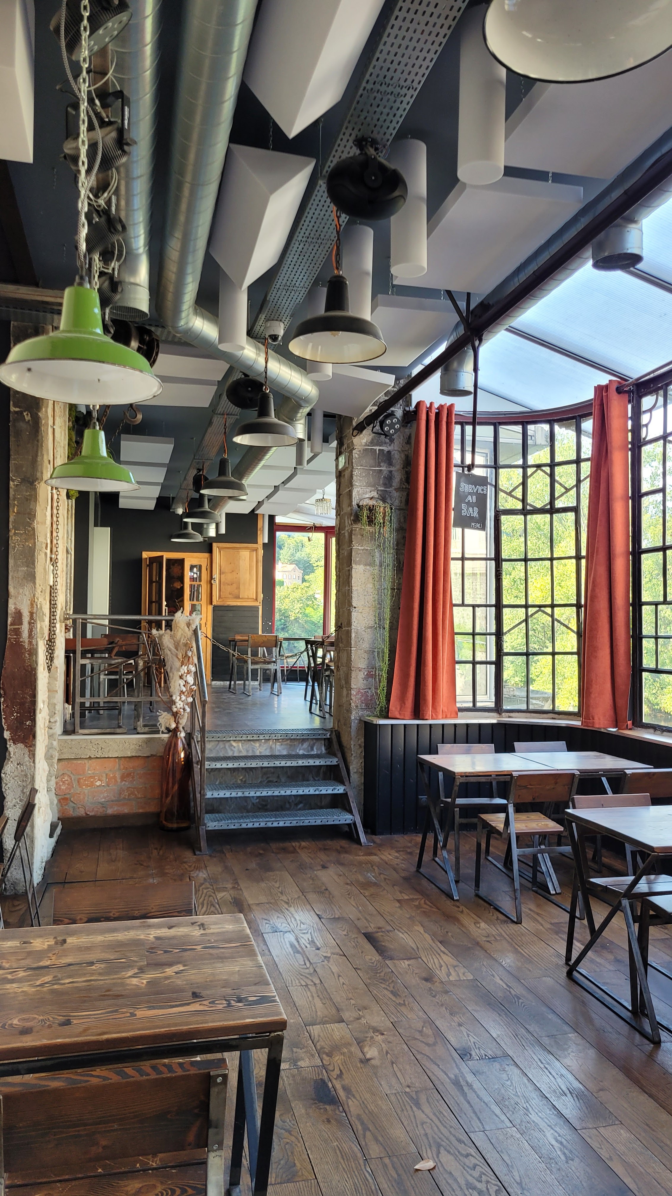 Brasserie restaurant super pour le cadre ( verrière et style industriel créent une ambiance très sympa) , pour la cuisine originale avec des saveurs qui matchent bien ensemble, pour les bonnes bières et la gentillesse des serveurs . Je reviendrai avec tous mes amis !! 👍👍