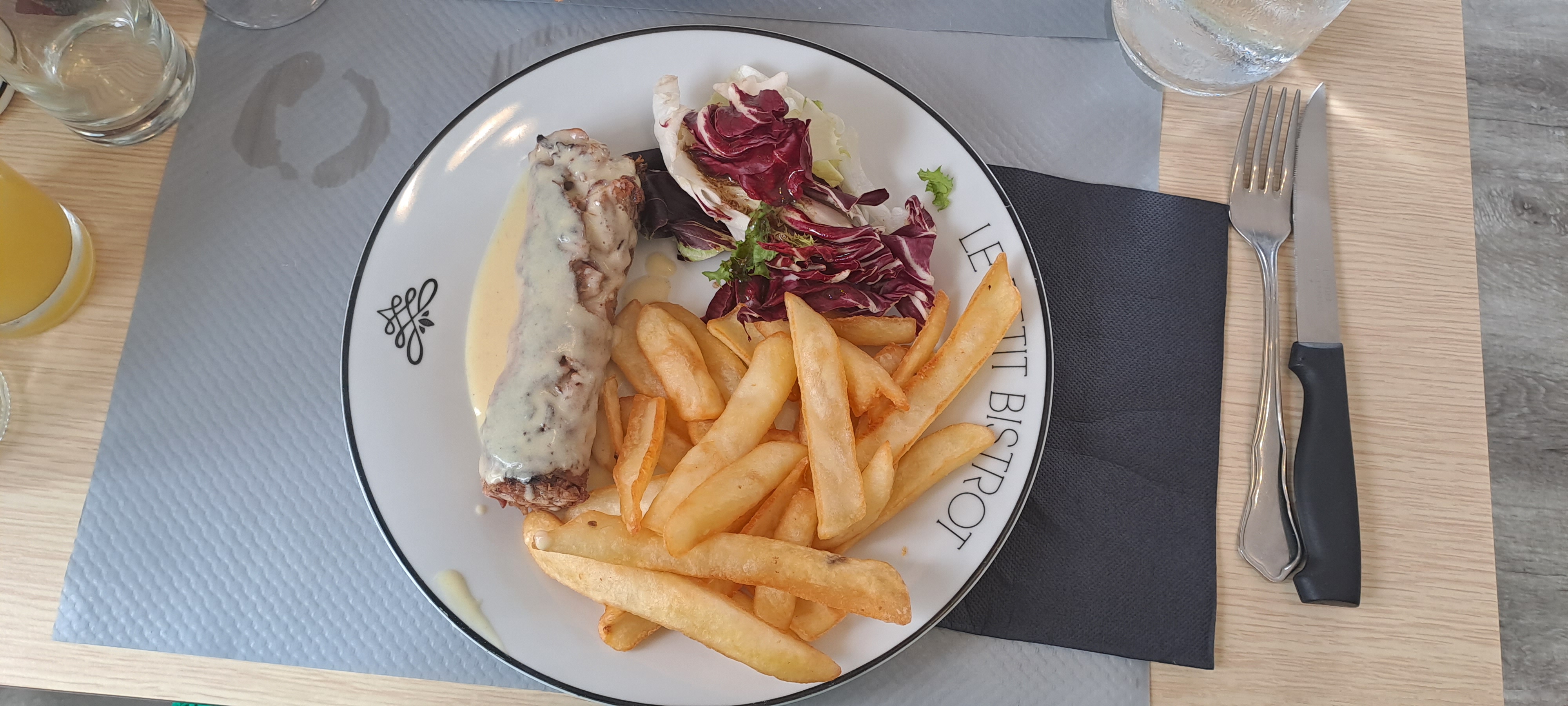 On a pu déjeuné tardivement à Midi. C’était parfait ! Andouillette, tartare de boeuf et bavette Argus avec de bonnes frites ! 😃