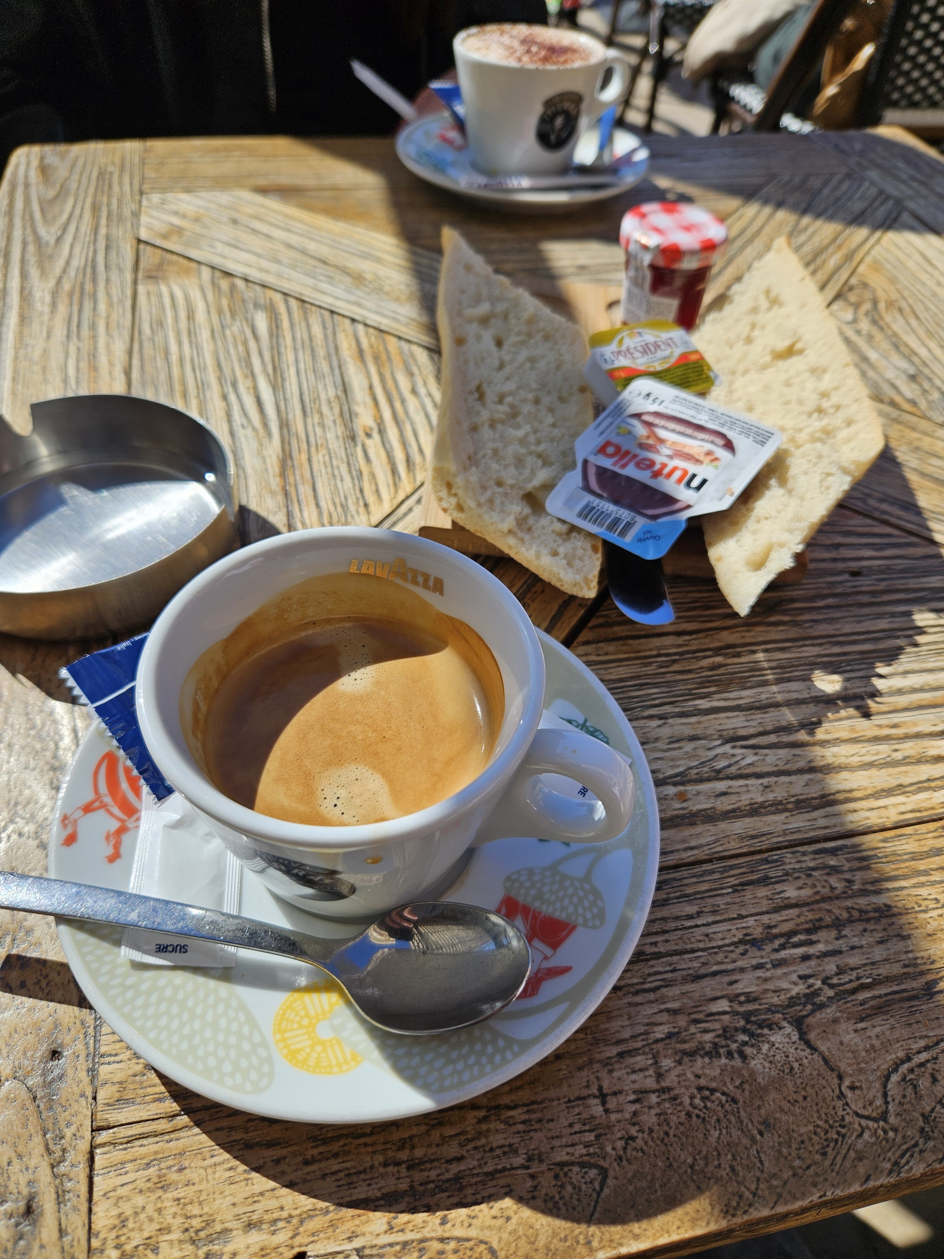 1er endroit où nous nous sommes arrêtés à Cannes lors de notre courte excursion en croisière. Le croissant était si doux et feuilleté 😍 Le personnel était courtois et le café semblait être un endroit que les locaux appréciaient également.