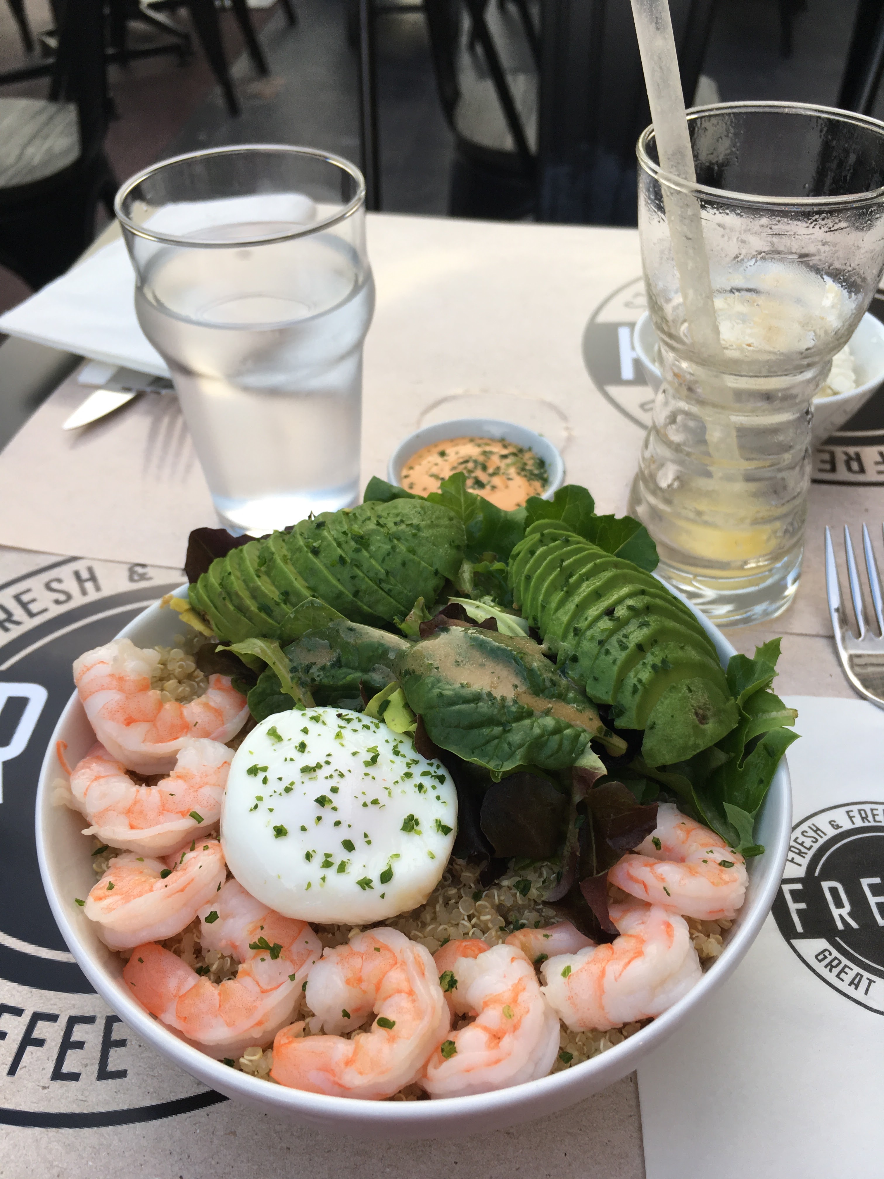 Allergique au gluten je me suis régalée ! Plat très copieux (healthy crevettes avocat salade quinoa), à prix très correct 11€). Magnifique aussi pour des jus de fruits, cocktails à composer soi même, fruits frais pressés et smoothies (demandez la carte !). Très bien situé, vue agréable sur le kiosque à musique, personnel très sympathique, un sans faute, je recommande sans hésiter