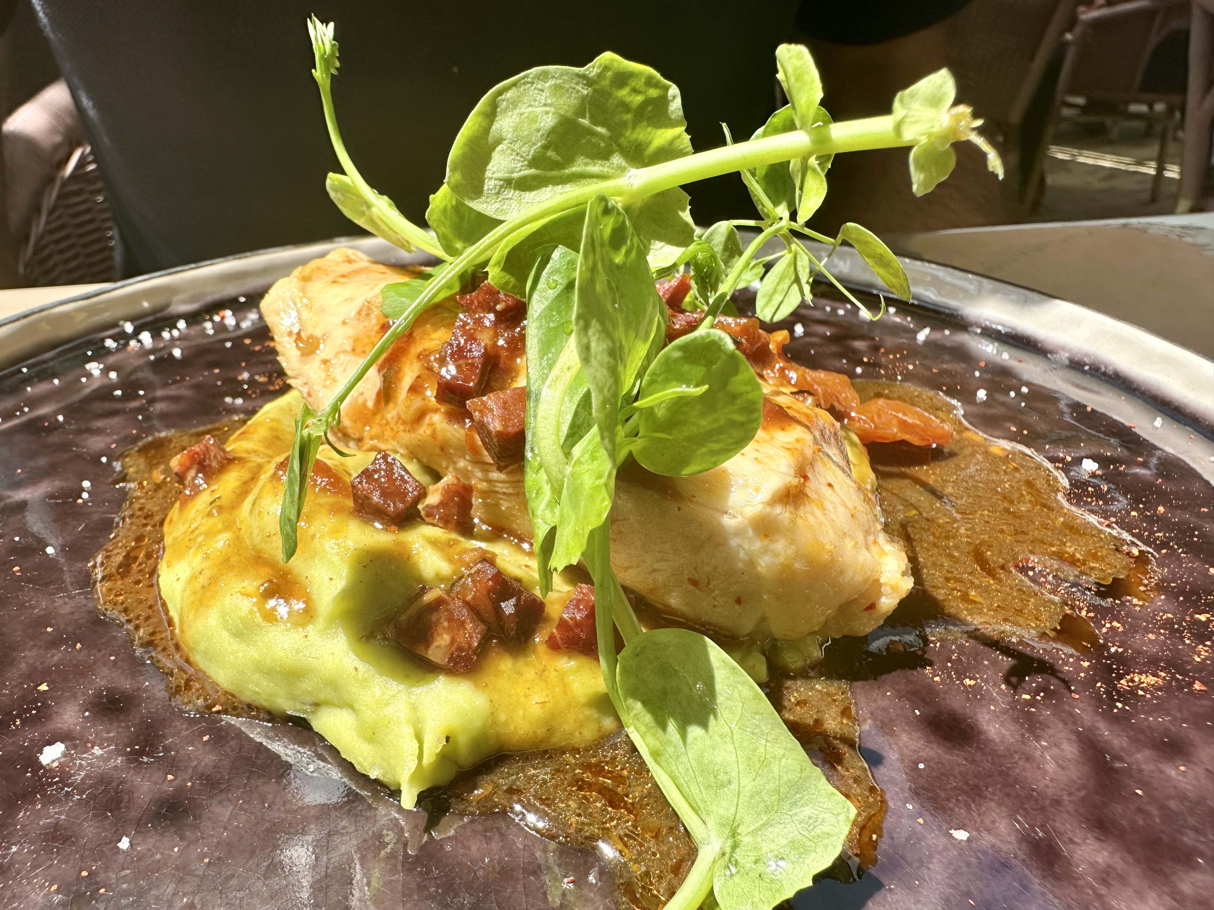 Le cadre est agréable, le service fluide, toutefois La recherche trop présente de la marge ne cadre pas avec les descriptions ronflantes du menu, cela se traduit par une légère déception quand l'assiette arrive.