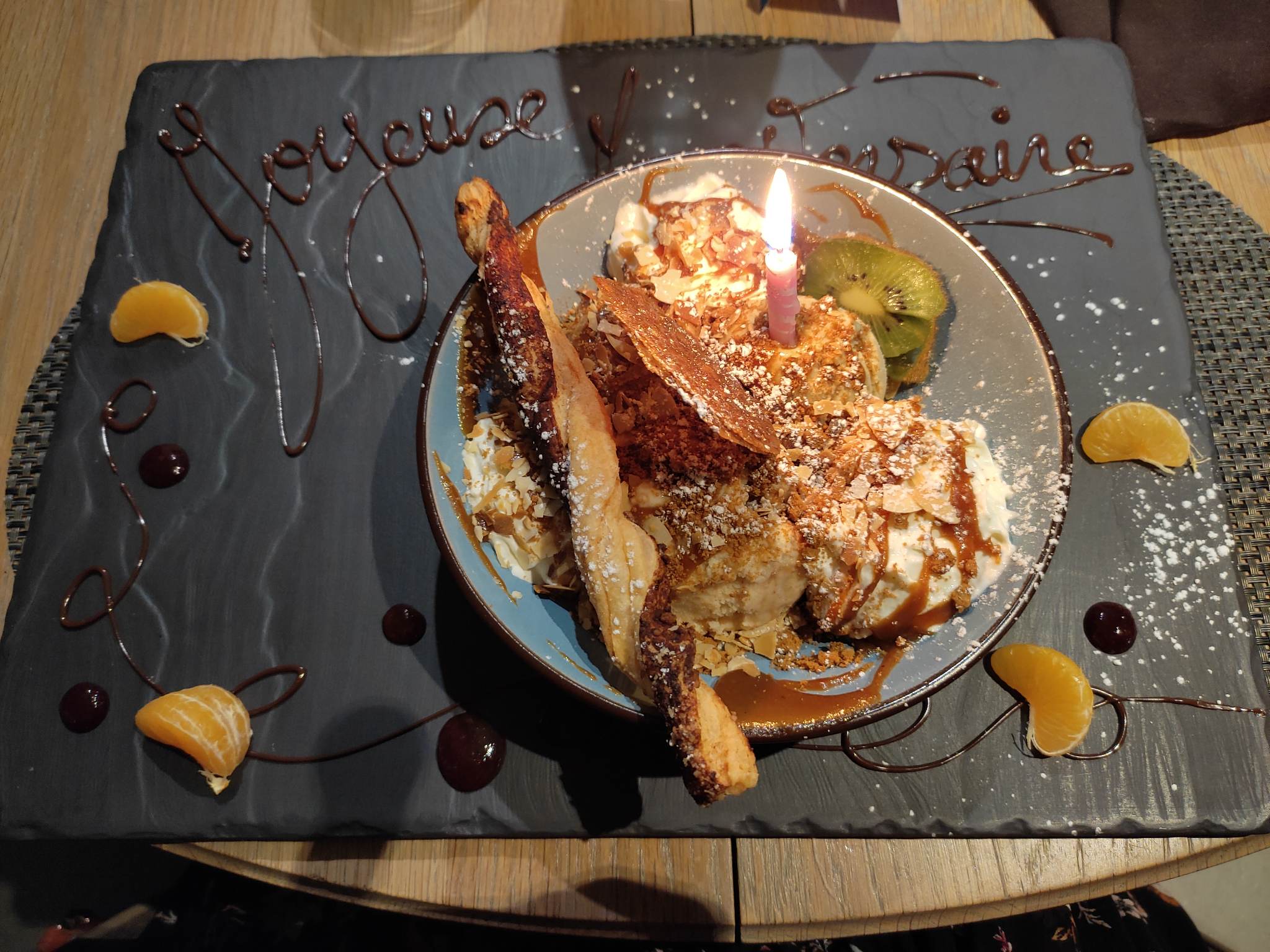 Nous n'avons malheureusement pas apprécié le goût du poisson présent dans la cuisine du menu (49€). Nous avons aimé le canard du menu gourmandise (52€). Le dessert glacé contenait des fruits non pelés, ce qui nous a semblé étrange. Vous devez éplucher vous-même les morceaux de banane et de kiwi.