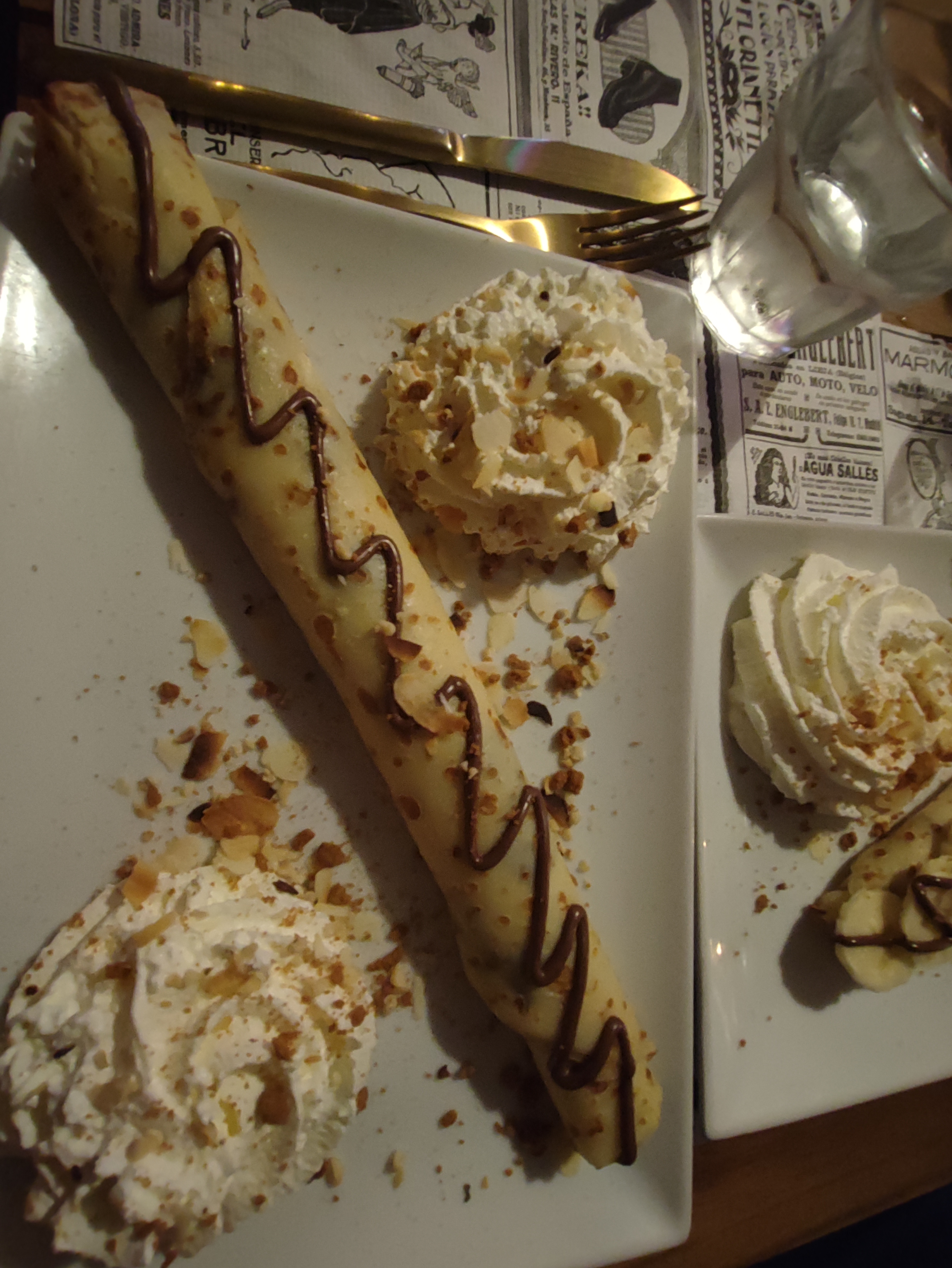 Deux crêpes au Nutella nous ont ravies dans ce restaurant à la déco sympa. Service très courtois et tables bien nettoyées entre chaque client. L'endroit est propre. Les tarifs sont raisonnables et un artiste est venu se produire en musique. Une bonne expérience pour nous et la crêpe au Nutella n'est pas une simple crêpe avec de la pâte à tartiner, elle est bien garnie et ornée d'une petite meringue.