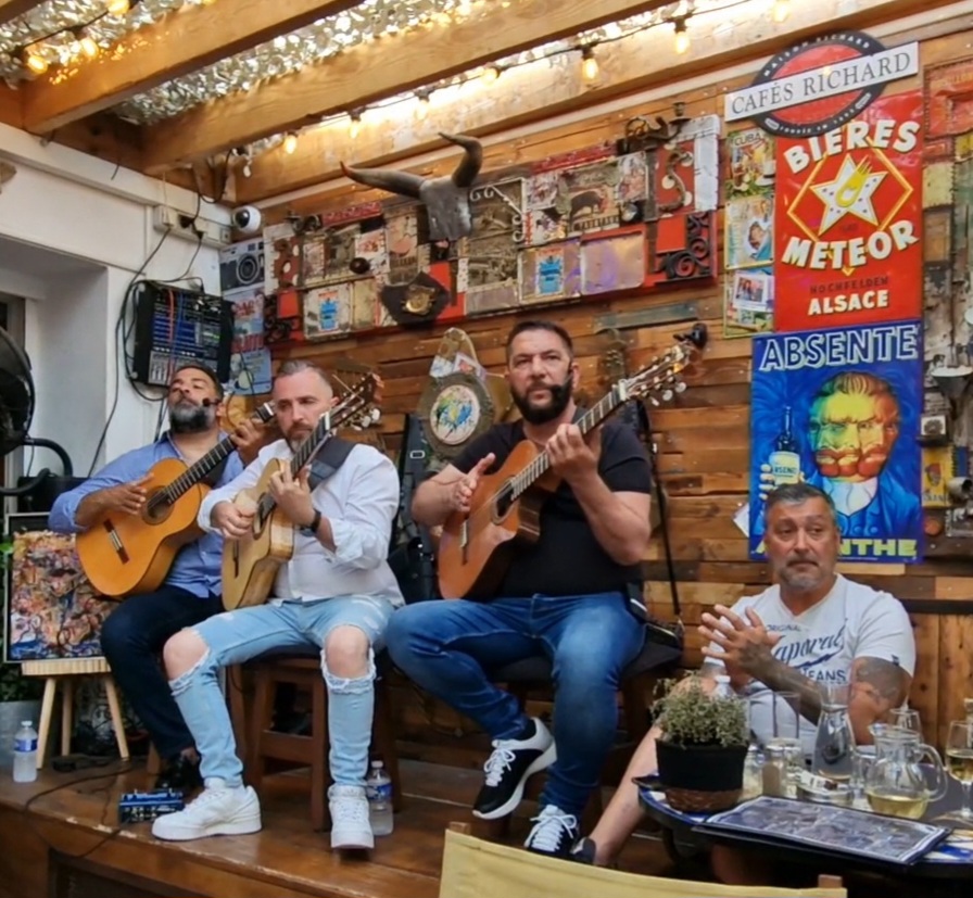 Ambiance chaleureuse bien animée . De très bon guitariste vous font voyager dans l'univers des musiques ziganne. Accompagner d'un bon petit repas On a passé 2 belles soirées .