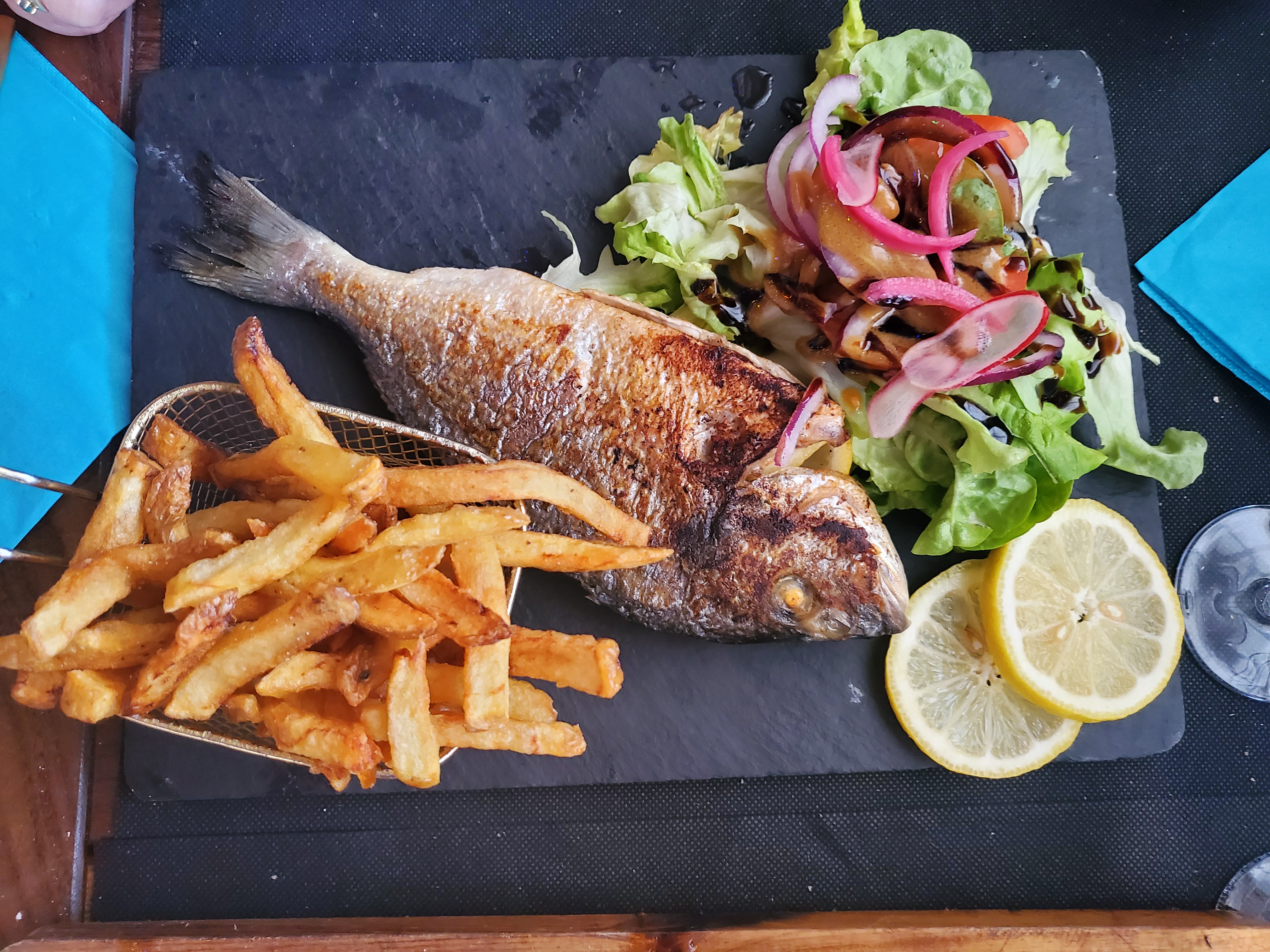 Cocktails 🍸 pris à 18h. Personnel très serviable et boissons très bien préparés. La friture de Joël (ou Michel?) à 9 euros est imbattable : une assiette remplie de mini poissons grillés, avec salade et pain. À deux, on avait presque trop ! Des musiciens se mettaient en place pour le dîner, ça avait l'air très bien.
