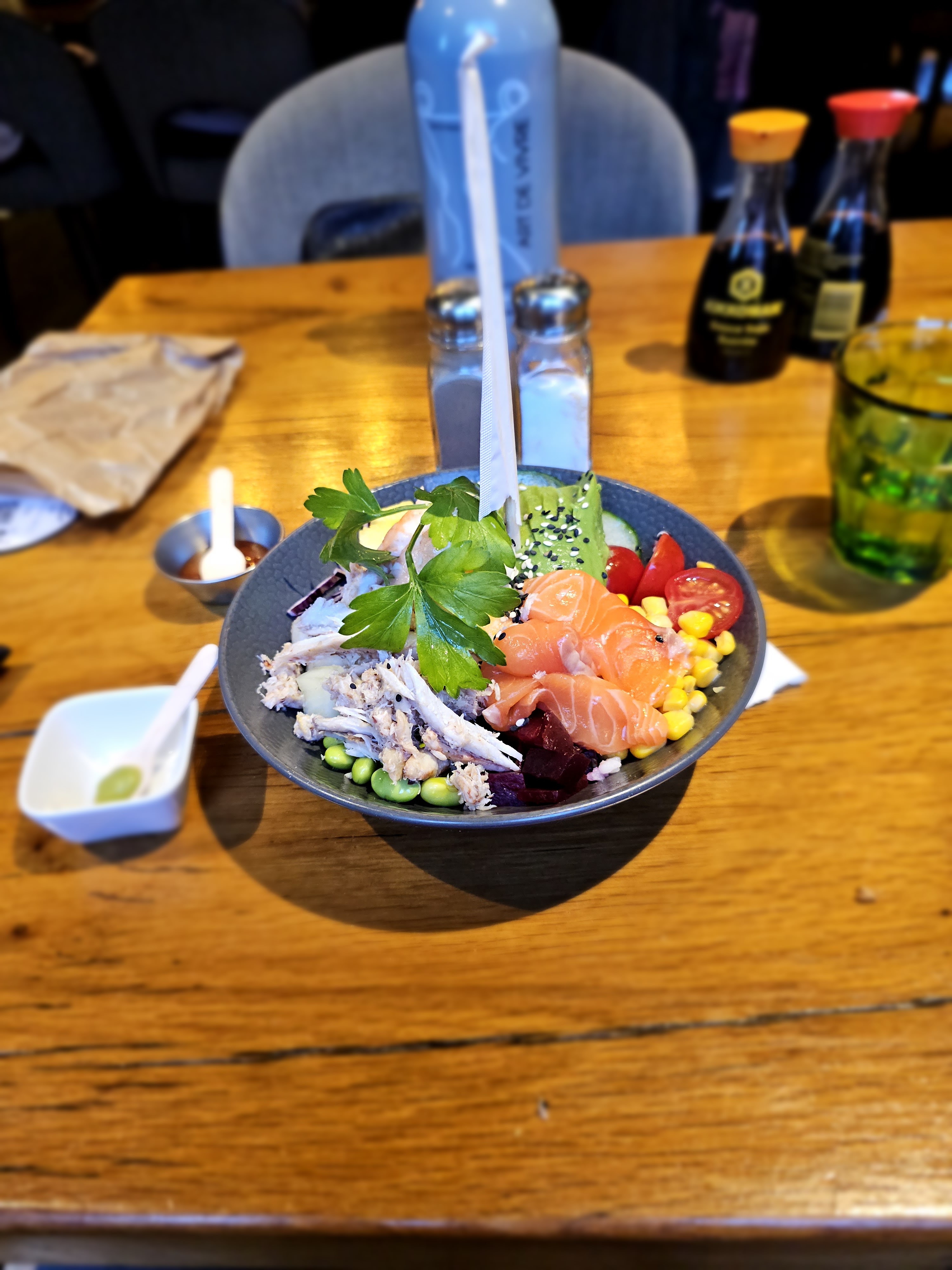 J ai goûter leur poke c était très bon il faudra que je revienne l ensemble de leur carte me faisait envie notamment le carapaccio mature. C est la première fois que j en voyais dans un restaurant. Le cadre est actuel et dans l esprit lot industriel avec tous les codes couleurs que j adore. Et côté prix c est abordable.