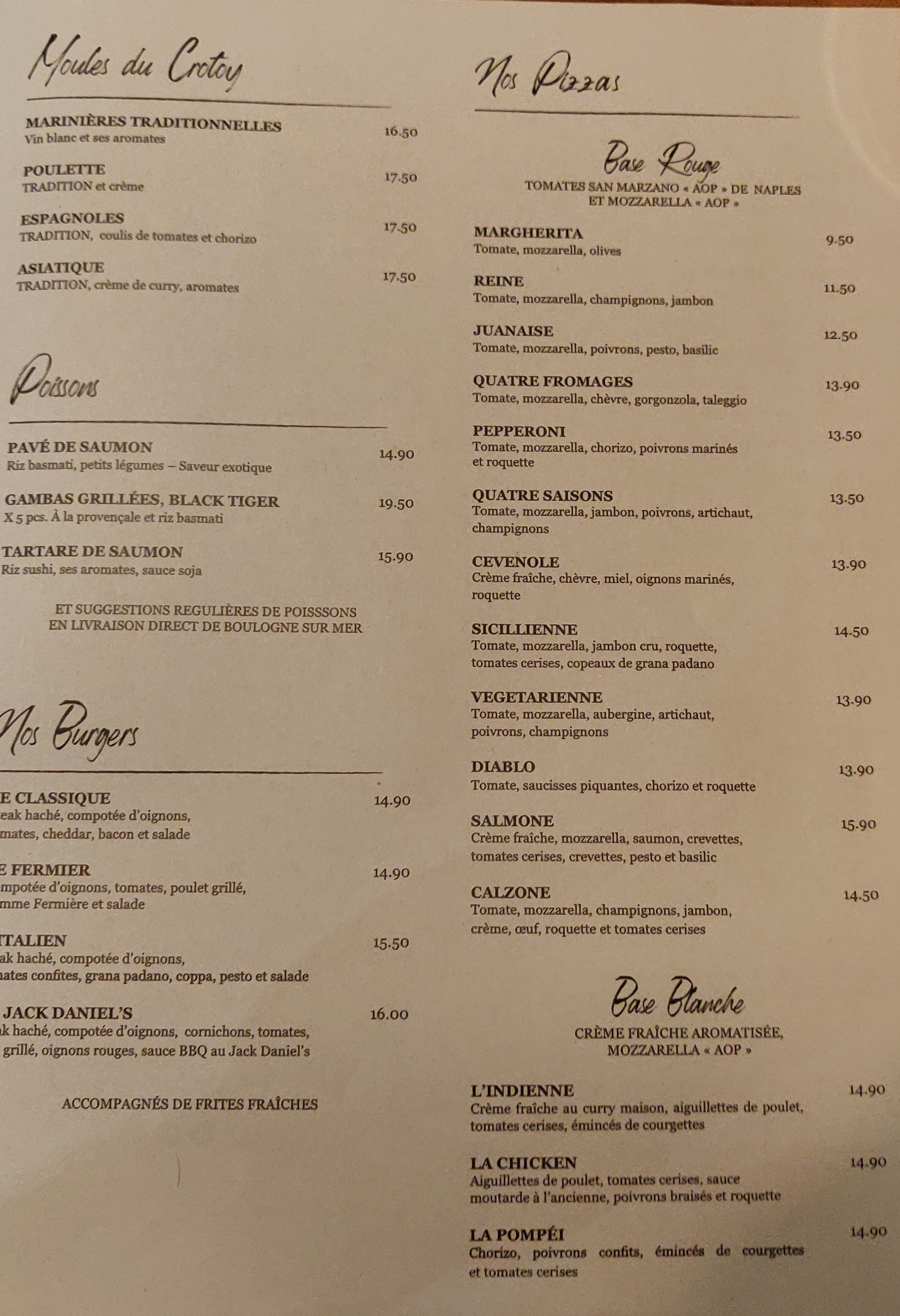 Nous sommes déjà venus plusieurs fois et jamais déçus. Personnel souriant, nous prenons régulièrement des pizzas à emporter qui sont excellentes, pâte fine et ingrédients de qualité cela change des pizzas du nord sans saveur.