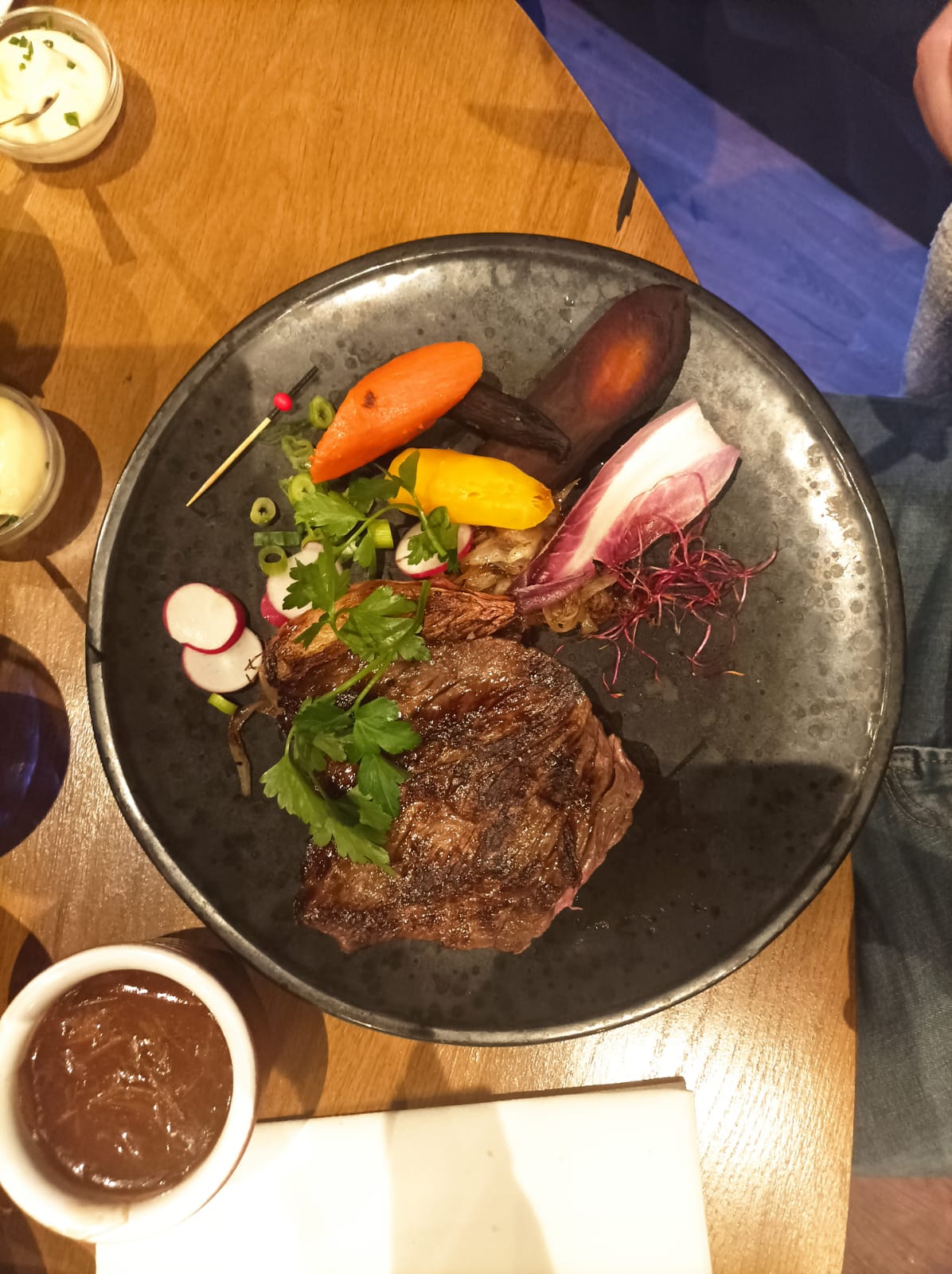 Déçu par le T-bone que je n'ai pas trouvé tendre mais c'était ma première expérience. La prochaine fois j'essayerai le Black Angus. Le carpaccio mixte était en revanche EXCELLENT, tout comme les frites maisons. La bière y est bonne est très généreusement servie, l'ensemble du repas est copieux. Décoration du lieu : chaleureuse et singulière, le service est bien en place, serveuse à l'écoute malgré une salle pleine. Je recommande dans l'ensemble, agréable moment. Les patrons présents à la sortie également abordable, disponible et à l'écoute. Je recommande.