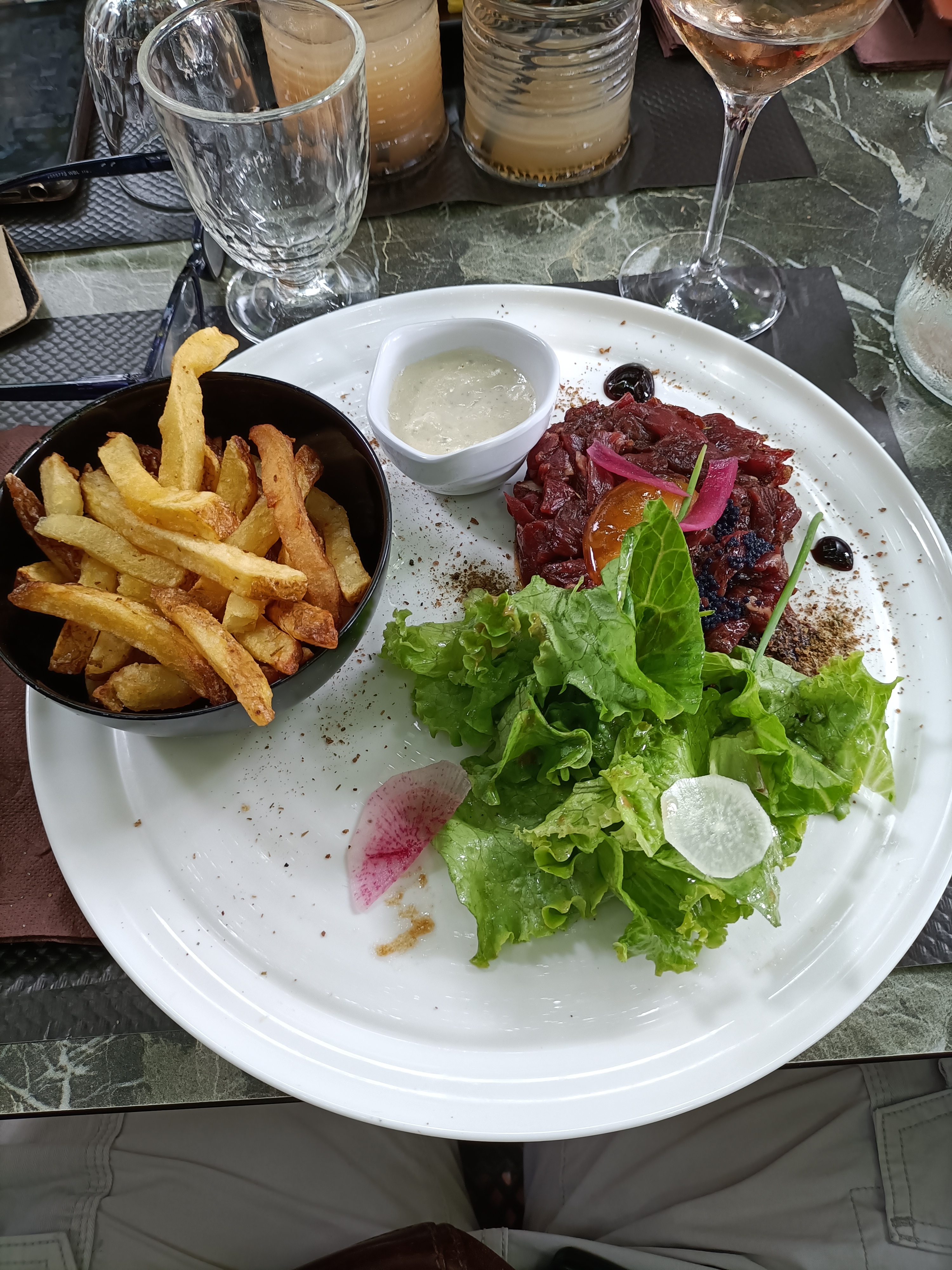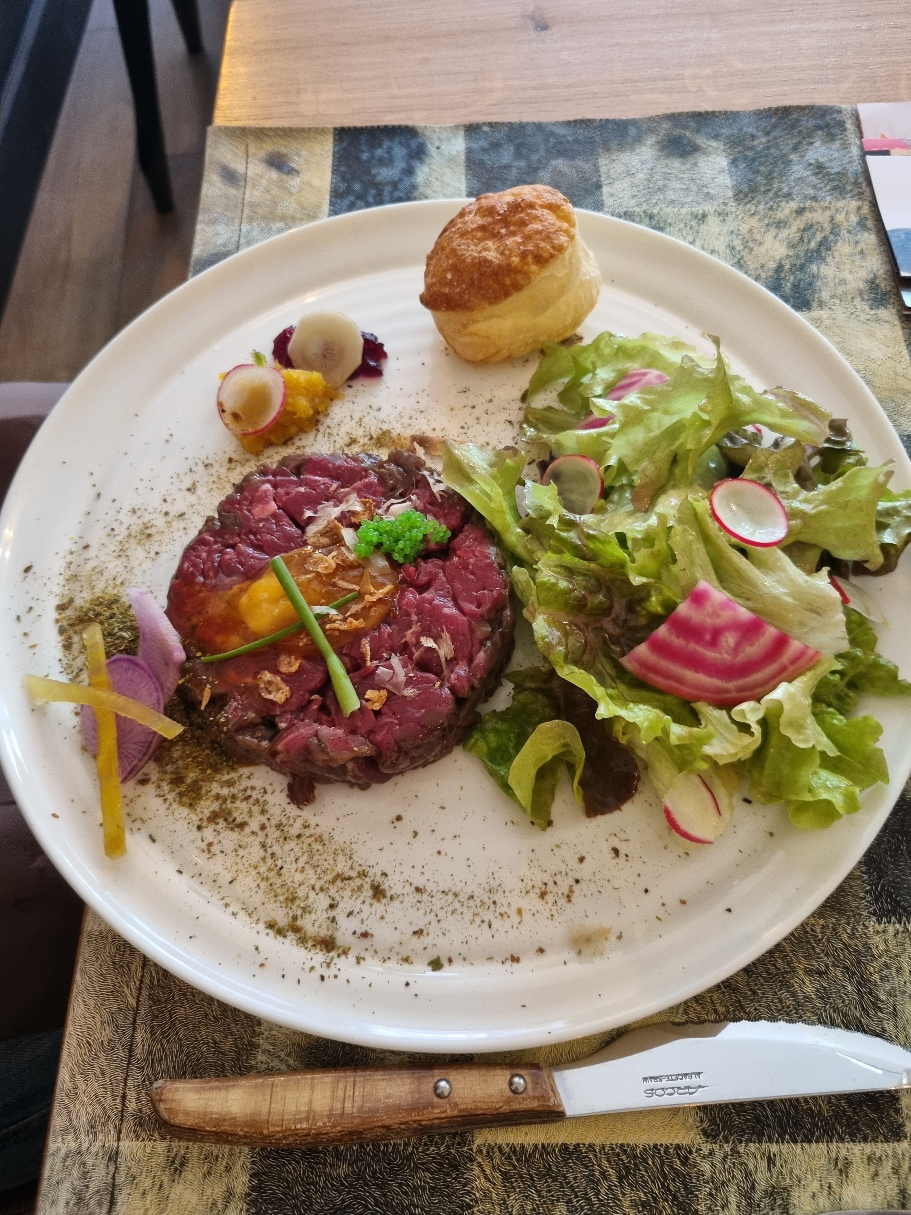 Exceptionnel, j’ai pris le grand tartare bœuf & huître selon le conseil du serveur « servi avec salade fraîche et excellentes frites maison », totalement surpris par cette préparation parfaite au couteau, un équilibre terre et mer exceptionnel… Excellent, un vrai régal ! Puis en désert , le citron meringué du chef… Une dinguerie, un des meilleurs désert citron meringue que j’ai eu l’occasion de savourer 😜 Service très professionnel et à l’écoute du client…. Merci et bravo !