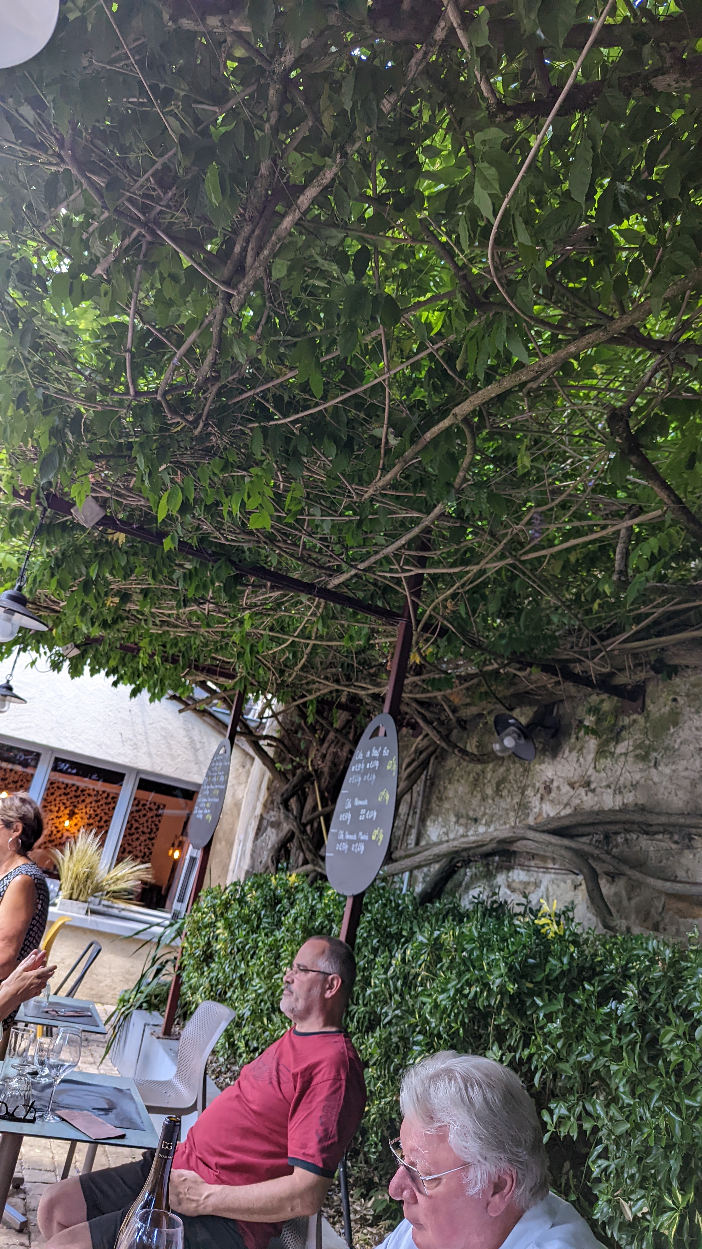 Ambiance très sympathique avec une jolie terrasse ombragée par une glycine. Plats de qualité et serveurs très souriants et accueillants. Juste un peu d attente sur la fin ...