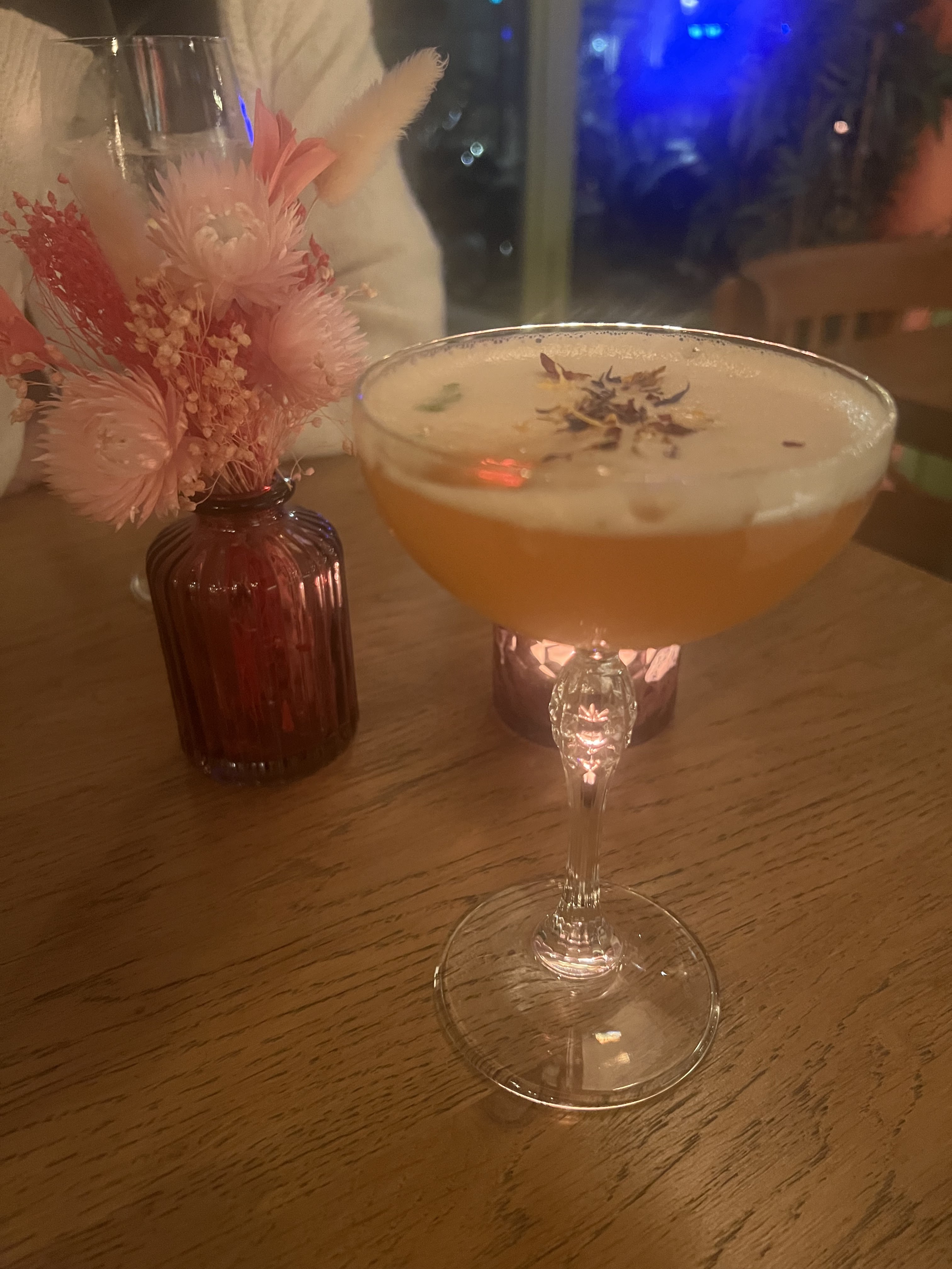 D'un côté, j'ai été séduite par la décoration élégante et l'ambiance chaleureuse qui règne dans cet établissement. Cependant, je dois avouer que le prix des plats est assez élevé pour ce qui est proposé. Bien que les assiettes soient bien présentées et que la qualité soit au rendez-vous, le rapport qualité-prix laisse à désirer. En revanche, les cocktails sont un véritable point fort : non seulement ils sont délicieux, mais ils sont aussi magnifiquement concoctés (avec quelques pétales de fleurs pour décorer et les liqueurs dans une fiole à part), ce qui ajoute une touche spéciale à l'expérience.