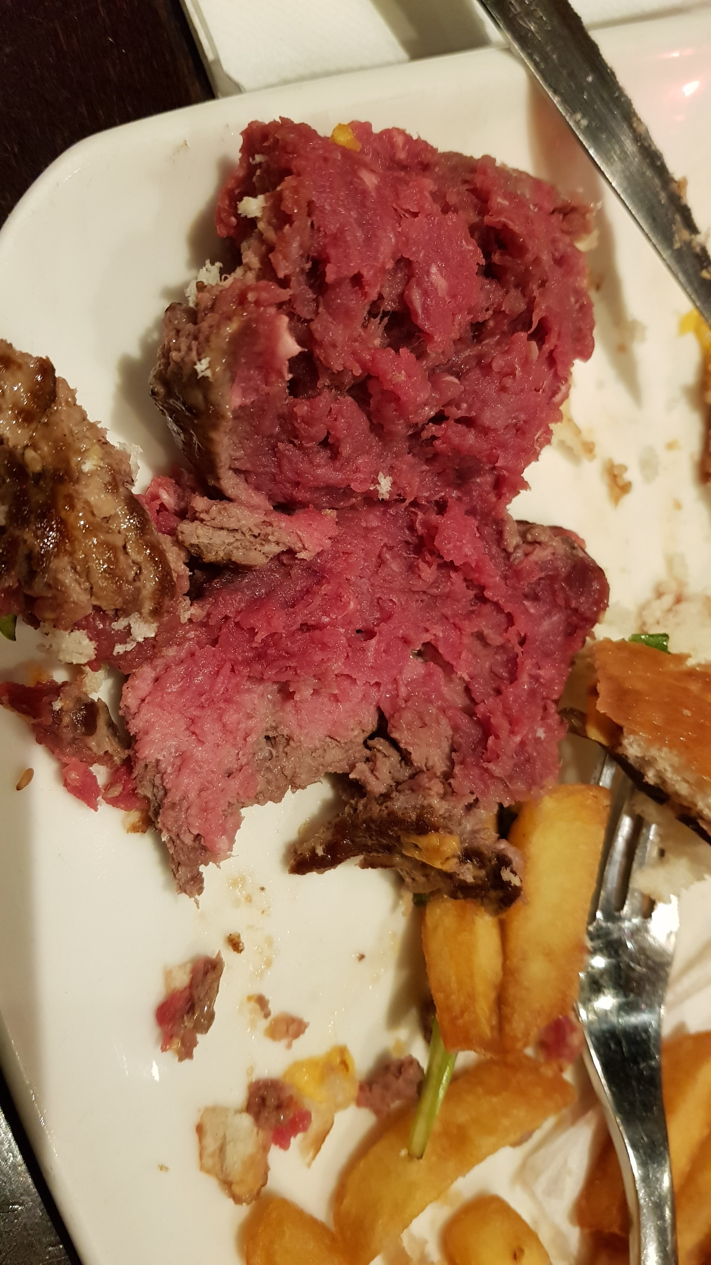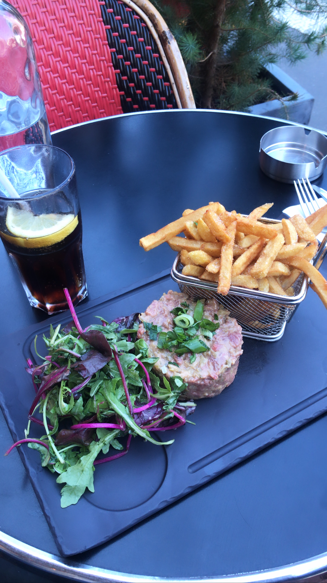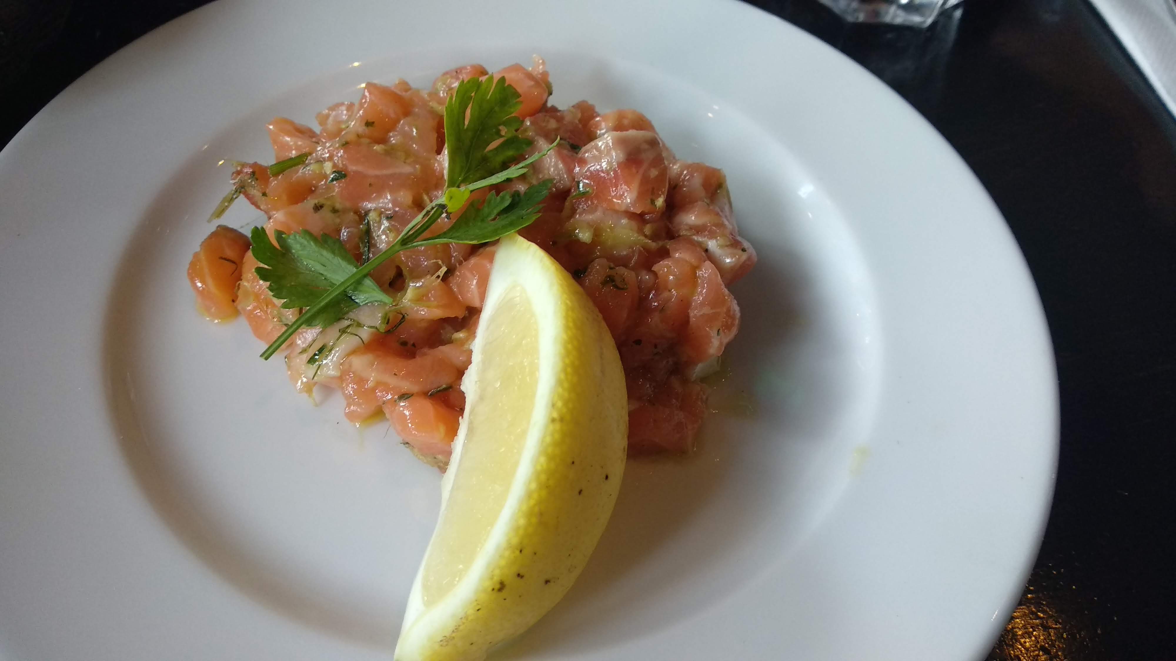 Très bon service mais un steak tartare très peu appétissant, pas de câpres que j'ai pu trouver et pas d'œuf cru sur le dessus et juste une étrange tache d'oignon - avait l'air gris rose et avait le goût d'avoir du ketchup mélangé à un mélange de morceaux, de cartilage et de pâte de bœuf. . Pas horrible mais certainement pas appétissant. L'huile pour les frites avait un goût vieux. La bière était bonne.