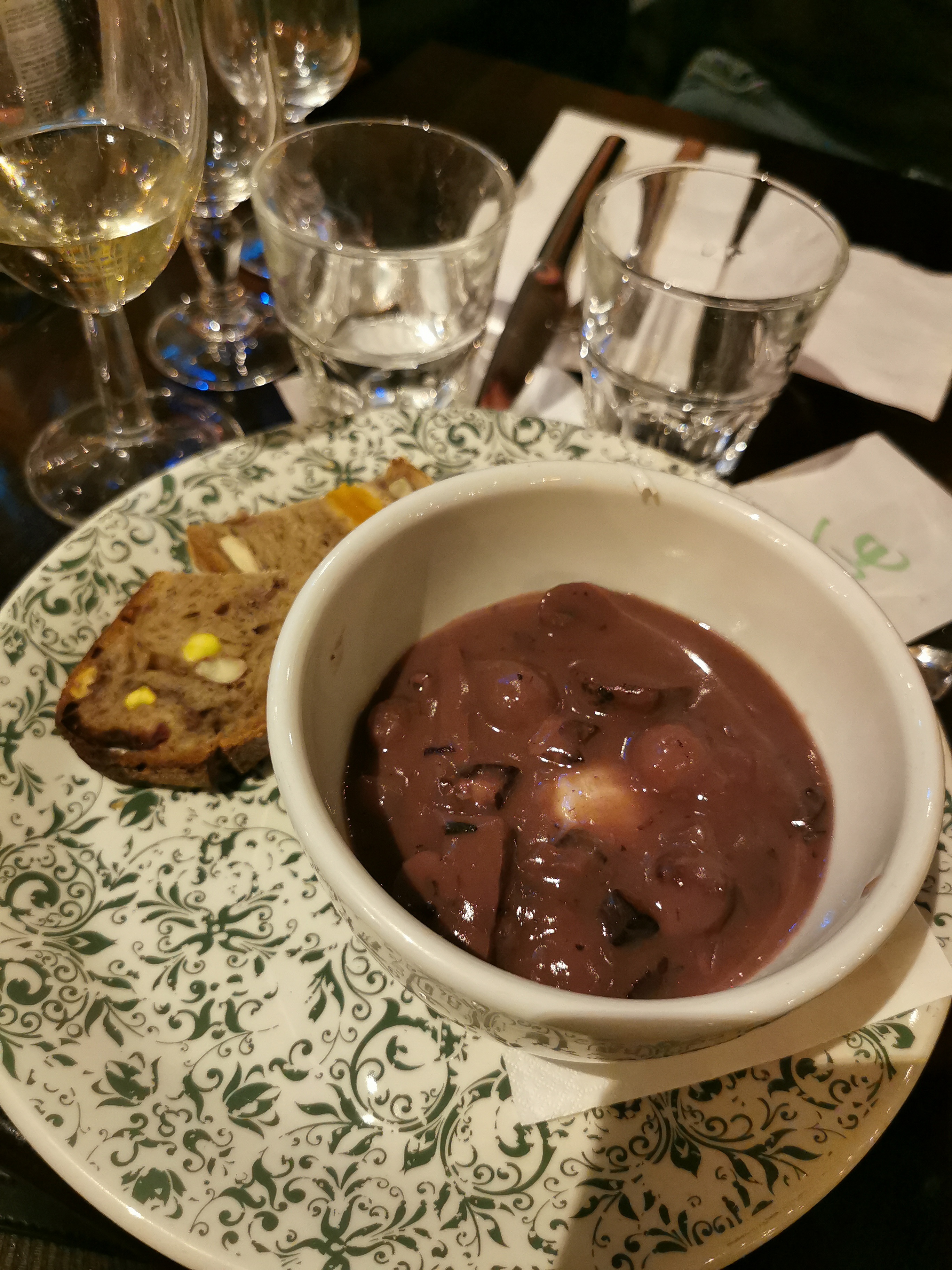 Belle devanture le point positif ! Mais le confort est pas au rdv, des courants d'air. En revanche Les viandes et os à moelle sont bons, bonne qualité ! Mais les entrées et autres plats sont très chers pour la qualité... Le serveur était très gentil avec nous c'était le plus ! Chaque assiette était différente (les aliments changeaient) alors que nous avions 5 fois le même plat ! Bière facturée jamais reçue... Les œufs meurette sauce très acide... Pour un repas d'entreprise c'était très moyen. Honnêtement je passe mon tour sur ce restaurant. Dépensez votre argent ailleurs...