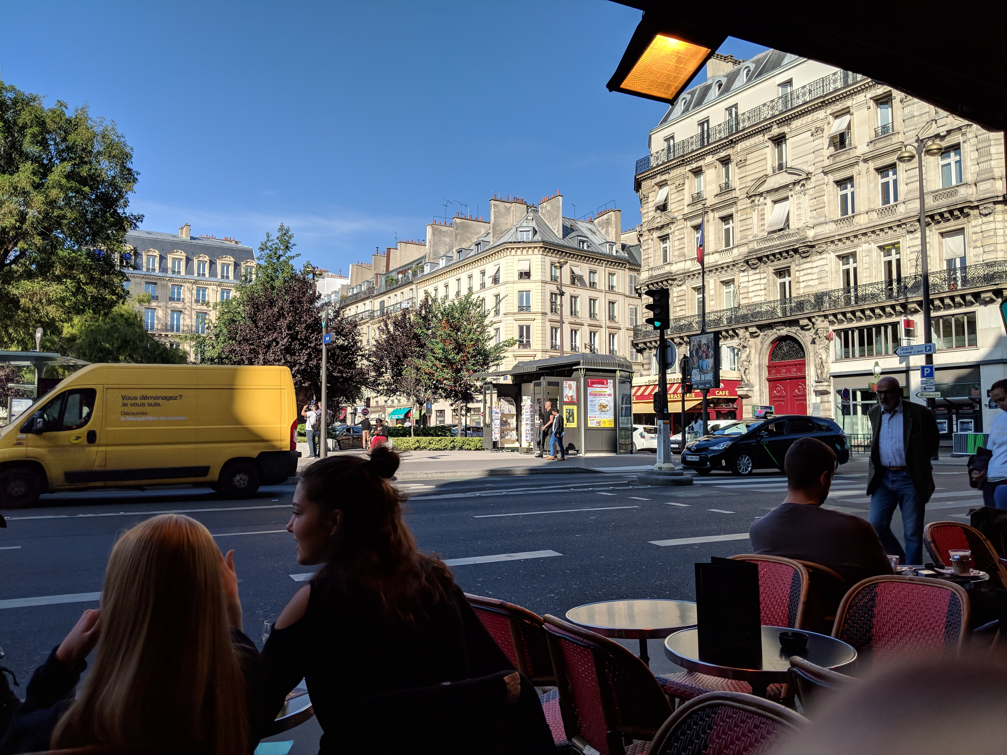 Beau bar/brasserie à touristes avec vue sur l'église de la Trinité qui se découvre enfin après des années de travaux.