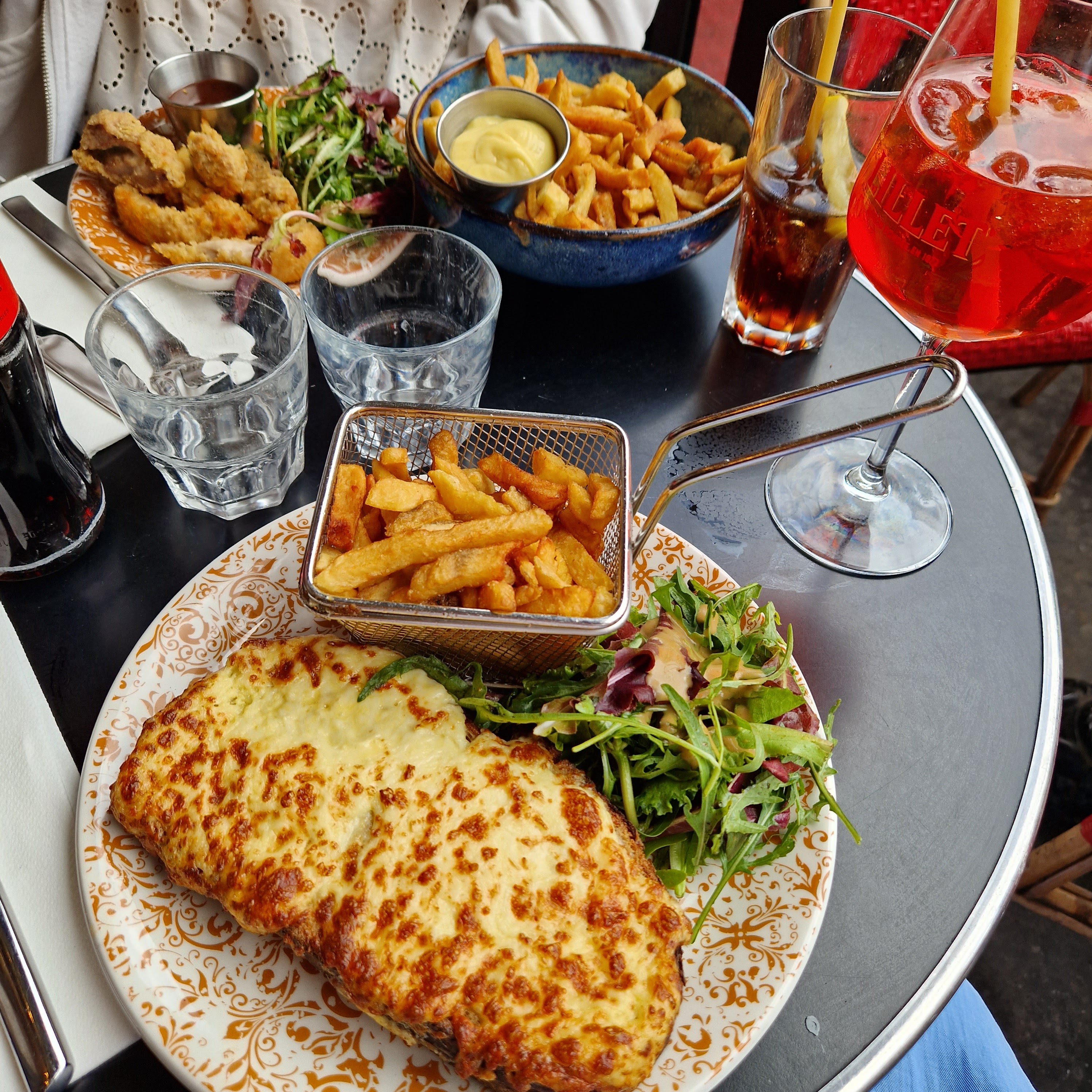 Vraiment déçu de notre repas ici ! La nourriture n'est pas sortie chaude. Nous avons trouvé une vien de poulet accrochée au poulet. Mon croc monsieur n'était pas aussi bon que j'en avais auparavant. C'était le pire endroit que j'ai visité à Paris pour manger.