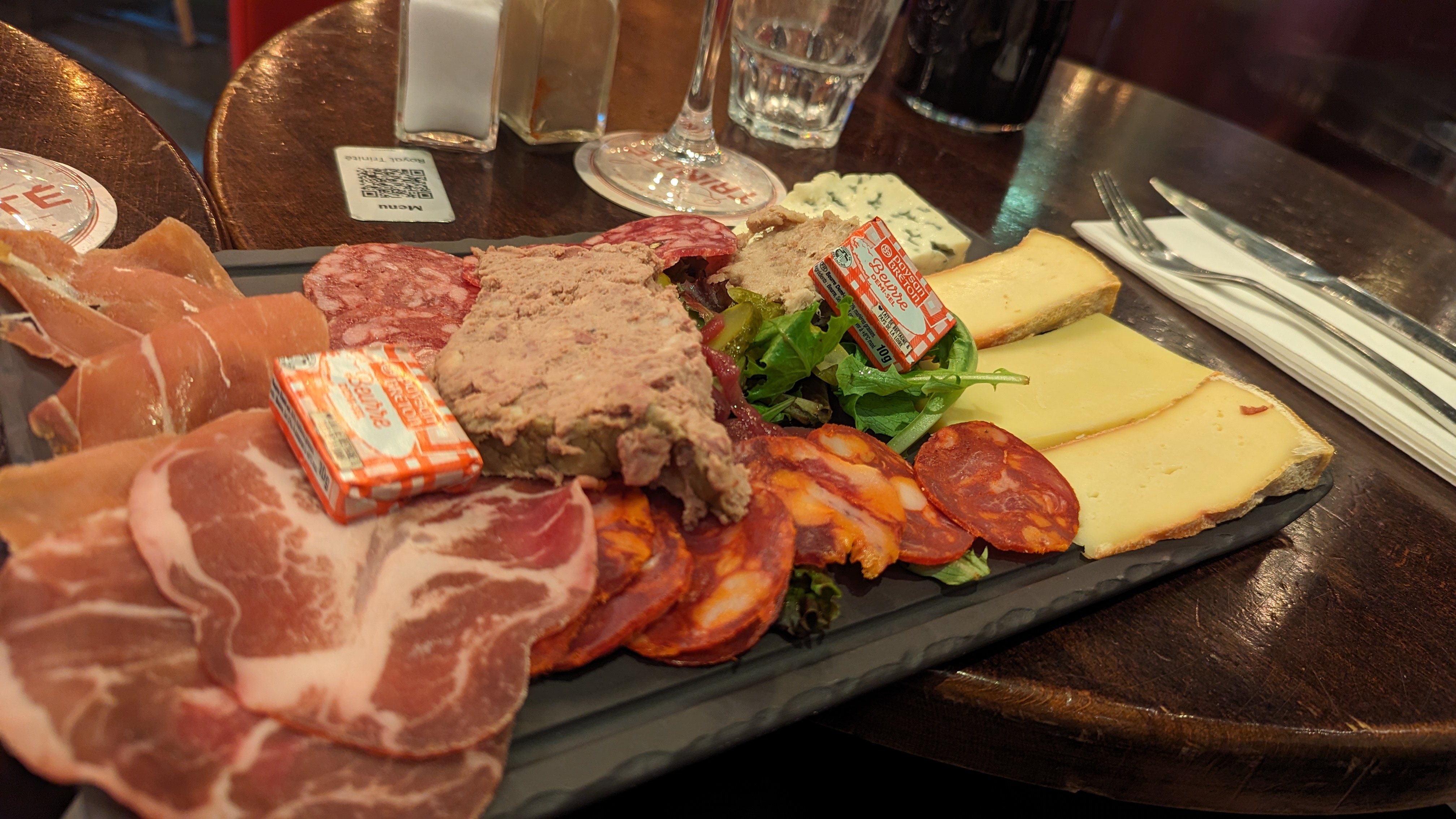 Dans l'ensemble correct, vous demandez une assiette de fromage à 8,50 et le serveur vous amène une planche à fromages à 16,50 à la place et vous vous en apercevez à l'addition. On vous dit qu'il a compris planche qui est une entrée conviviale alors que vous venez de finir un platDe plus on vous coupe le chauffage en plein repas, et vous mangez dans le froid.