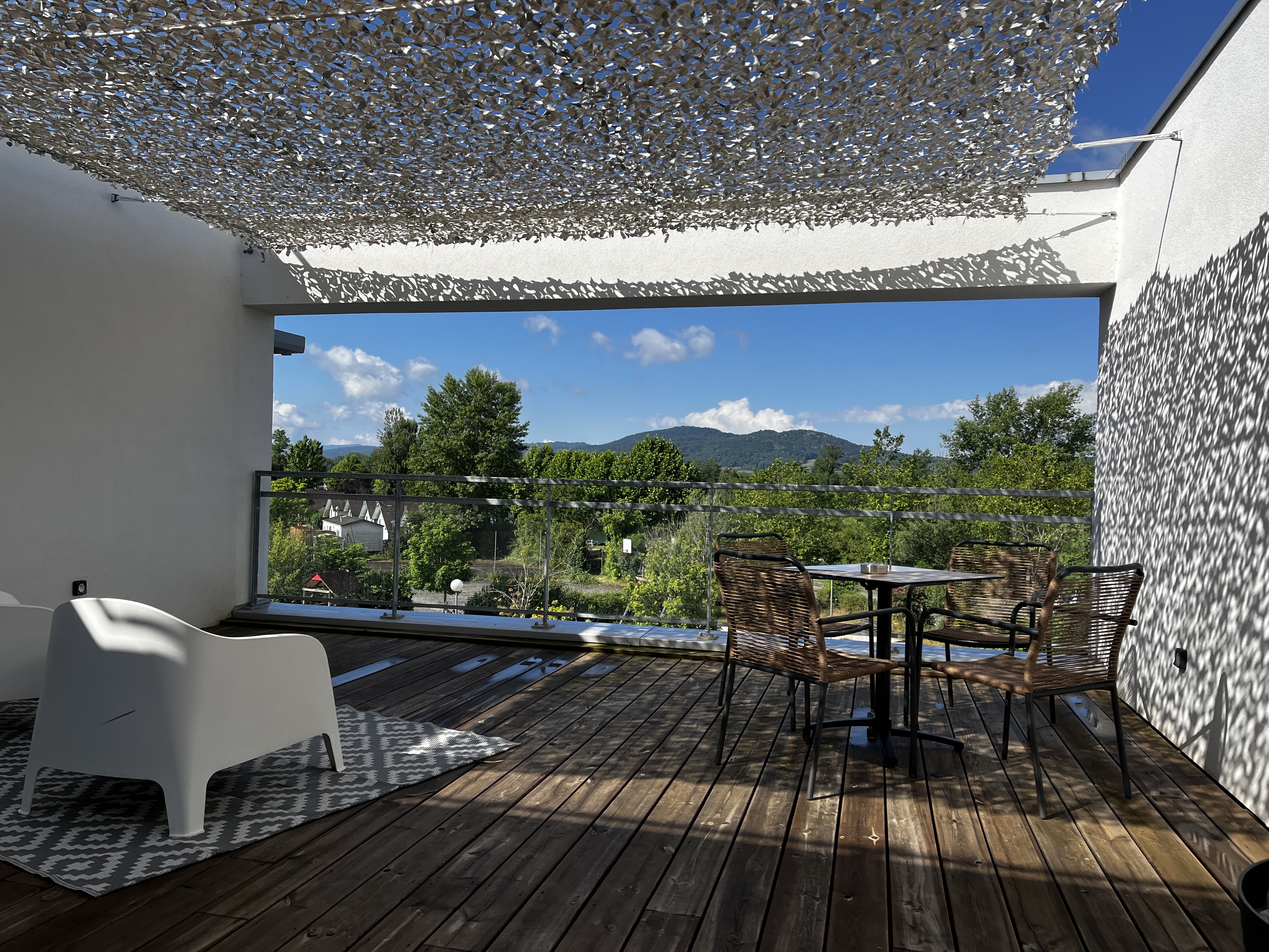 Bel hôtel calme avec des chambres modernes et lumineuses. Notre appartement avait un grand balcon et la salle de bain et les toilettes étaient séparées. Les portes qui se ferment silencieusement sont également idéales - vous ne pouvez donc déranger personne et ne le ferez pas 😴 Bon petit déjeuner buffet (+15 EUR par personne). Le parking de l'hôtel est fermé le soir. De beaux jardins et un emplacement idéal pour promener le chien sur le Rhône. Chanaz lui-même est accessible à pied.