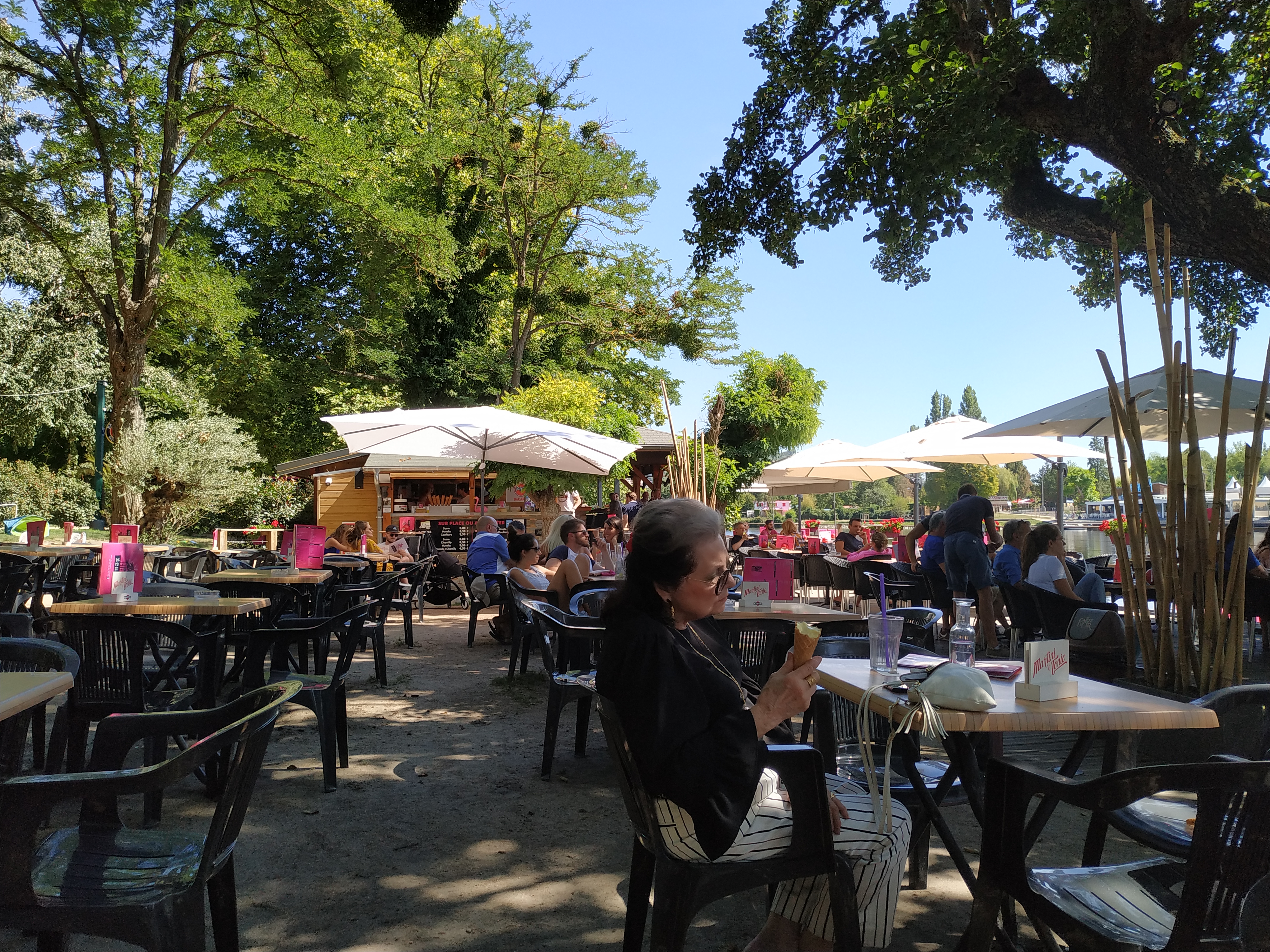 Ce qui ce fait de mieux à Vichy au bord de l'Allier. Planches de charcuterie, cocktail, restaurants, le cadre etc, tout est fait pour passé un agréable moment. Le personnel est accueillant et niveau attente cela reste correct. Ceux et celles qui critiquent les tarifs, tout simplement consulté la carte avant de s'installer.