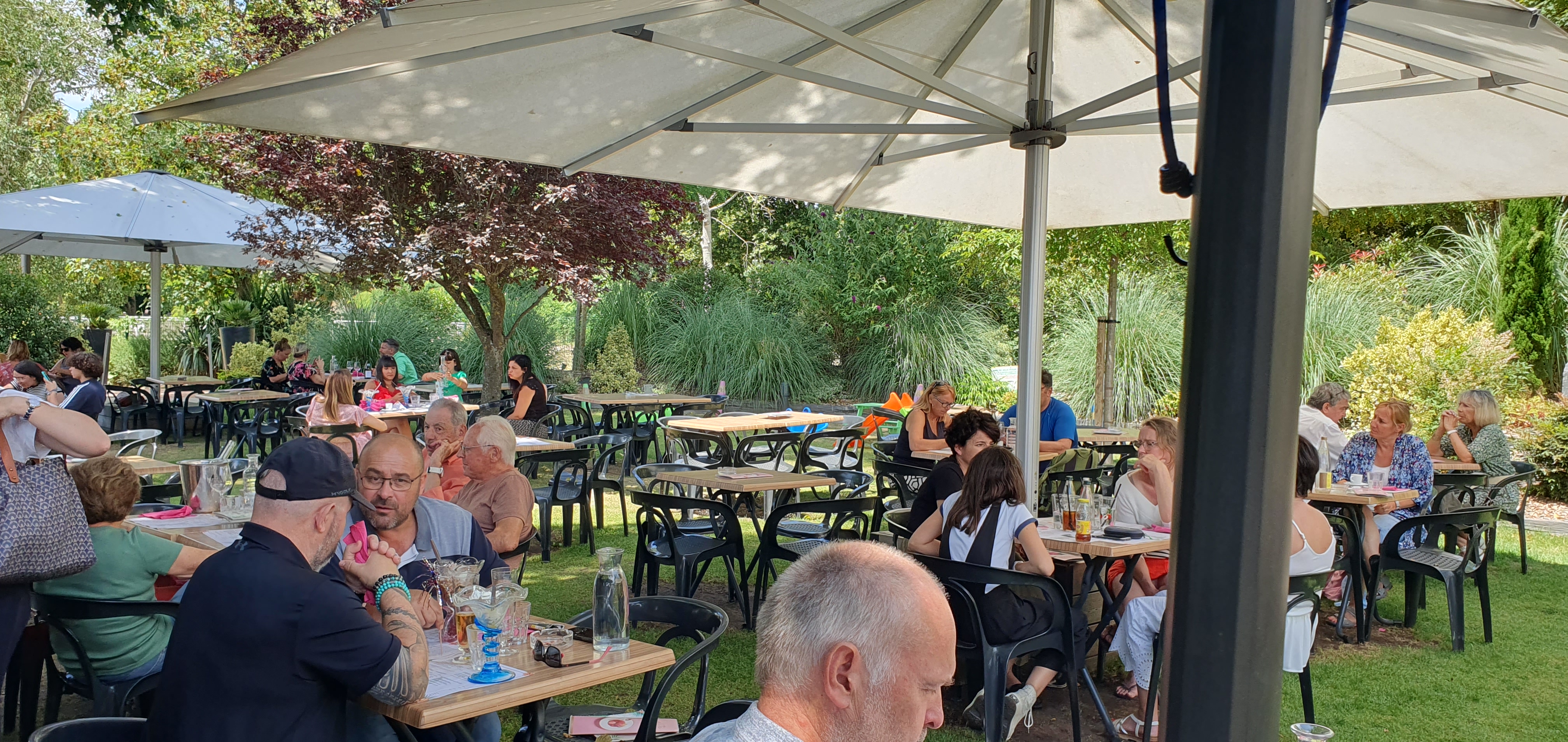 Pas le meilleur jour pour y aller, car c'était un jour de pluie. Mais nous avons quand même pu manger à l'abri. Les serveurs et serveuses sont supers agréables, nous avons très bien mangé. Le cadre est vraiment sympa, à refaire dès qu'il fera soleil.