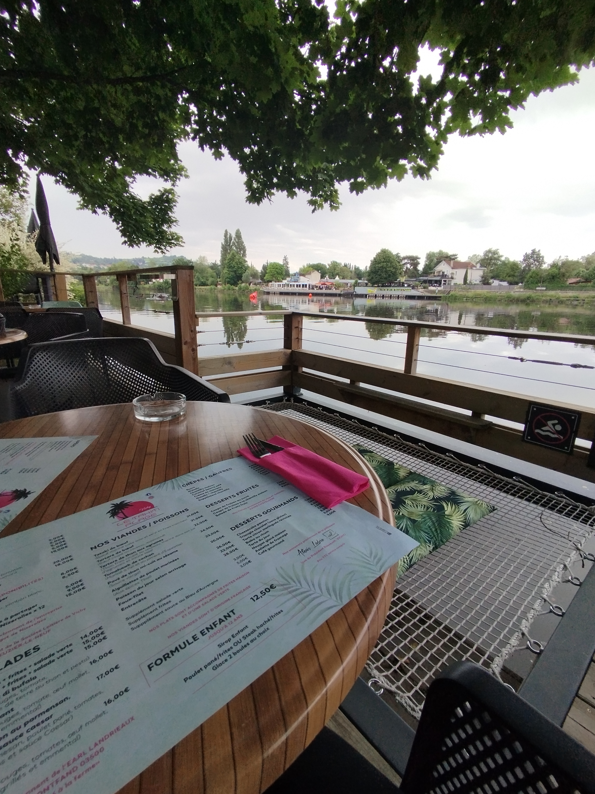 Un très bel endroit de vichy au calme le long de l eau. Service impeccable vue sympa ambiance plage.... Un très bon moment passe là bas..