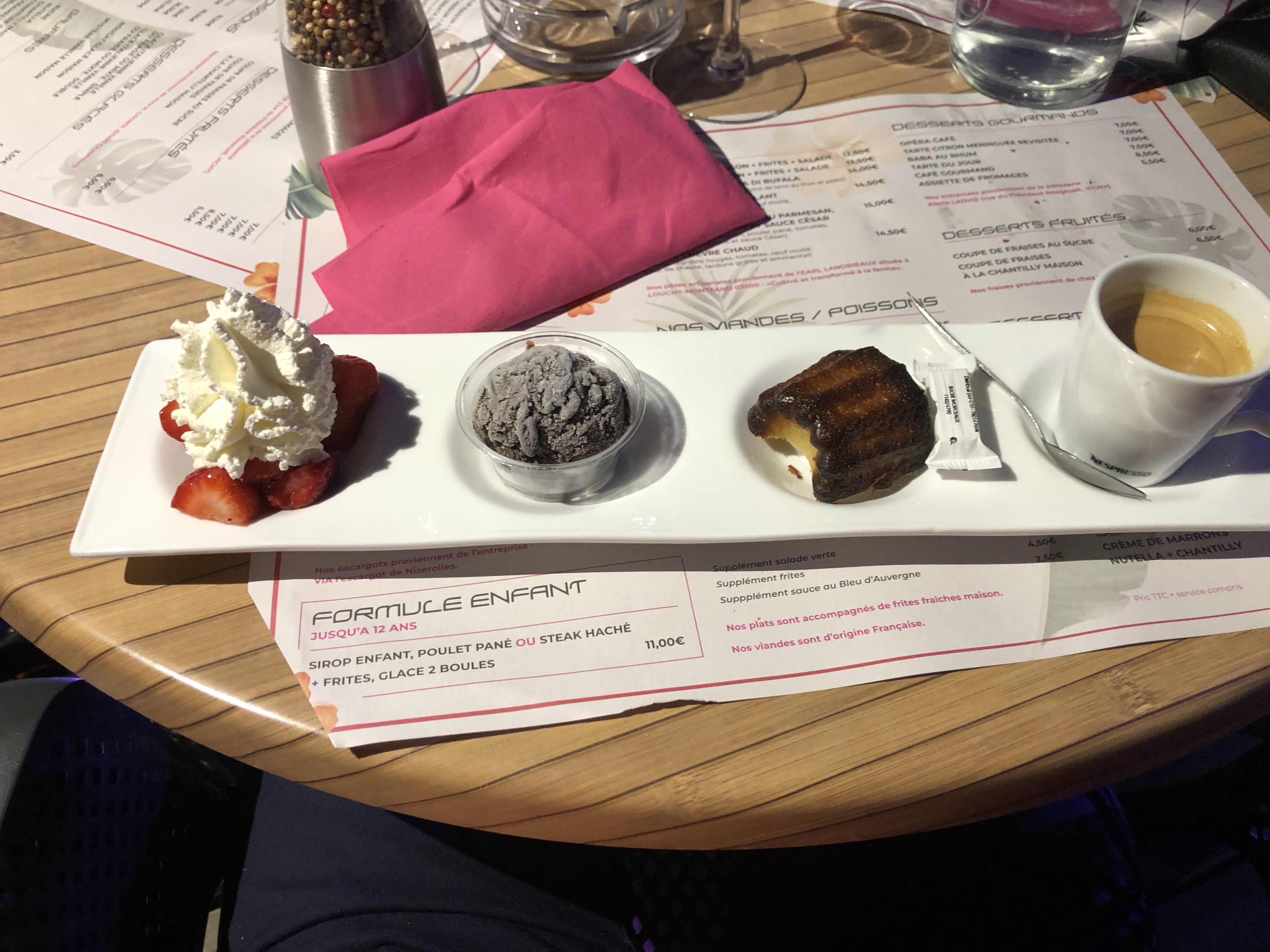 Cadre magique vraiment beau Mais 1/2 heure pour avoir 2 café gourmand qui sur la carte presice bien si les pâtisseries sont acheté chez un artisan pâtissier -ladevie a Vichy et on se retrouve avec une mini crêpe . Un pot de glace vanille et des fraises chantilly !!! Tout sa pour 7€ je suis déçue . Je voulais vraiment y aller pour le coup je n'y retournerai pas