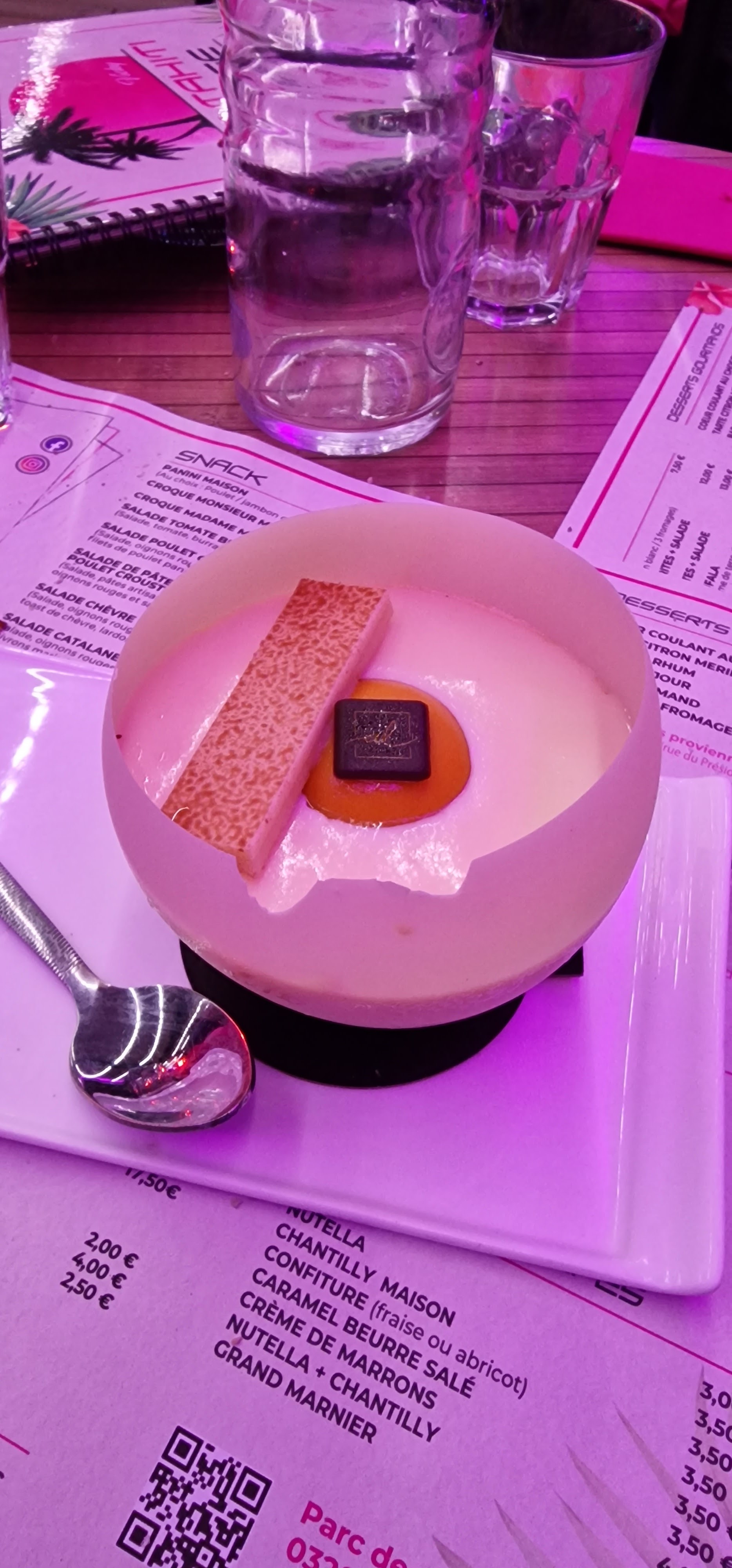 Nous commandons deux dame blanche et pas de chance le barman ne connaît pas la différence entre dame blanche et chocolat liégeois. Retour au bar et la personne derrière le bar nous reçoit comme des chiens il a fallut aller voir le responsable pour ce faire remplacer notre commande C’est dommage car l’endroit en vraiment sympa.