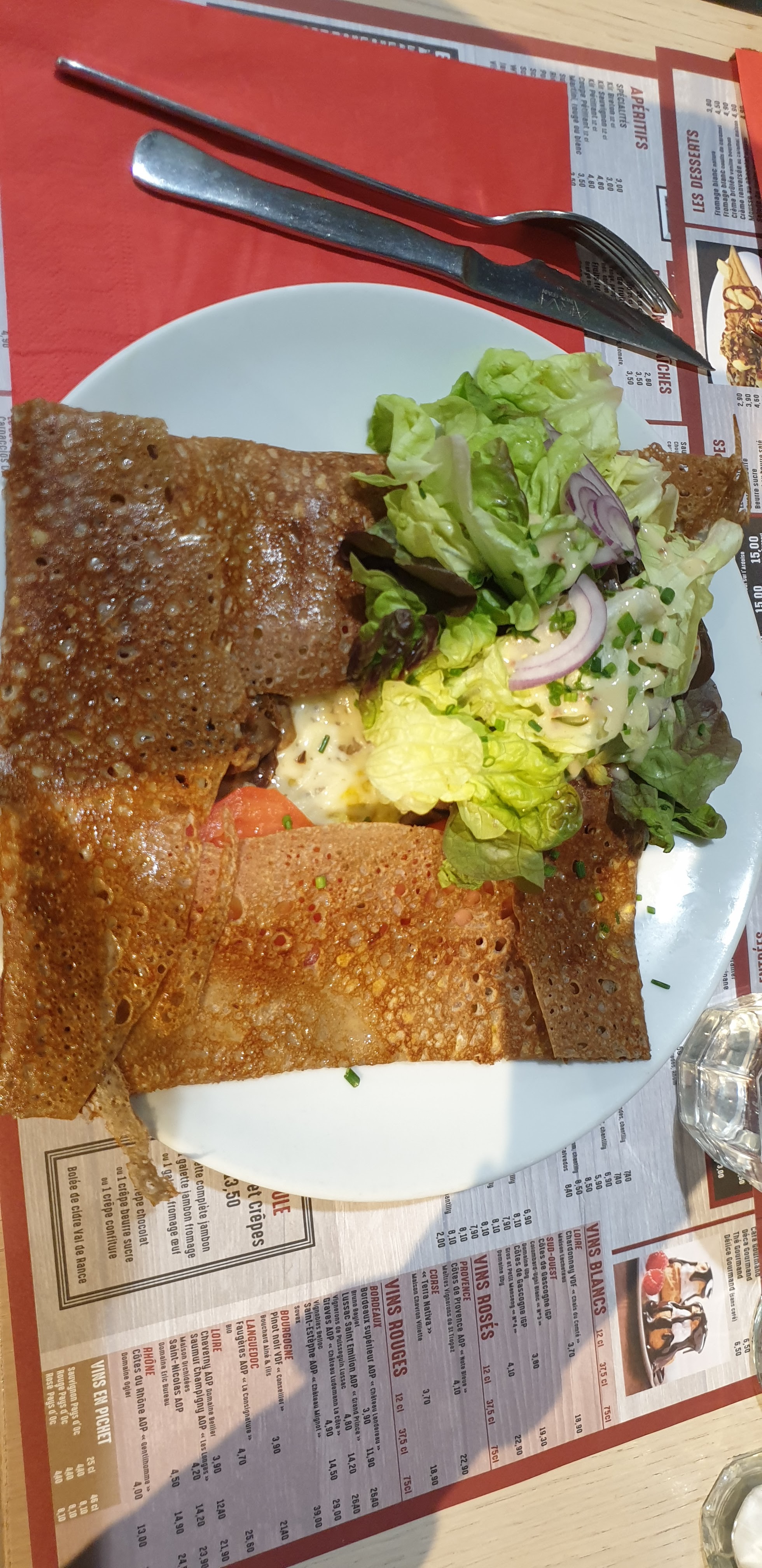 Bonne galette et repas copieux mais service mal organisé, très longue attente pour commander alors que nos voisin de table arrivés en même temps que nous sont deja servis. Le service de plus pas très agréable.