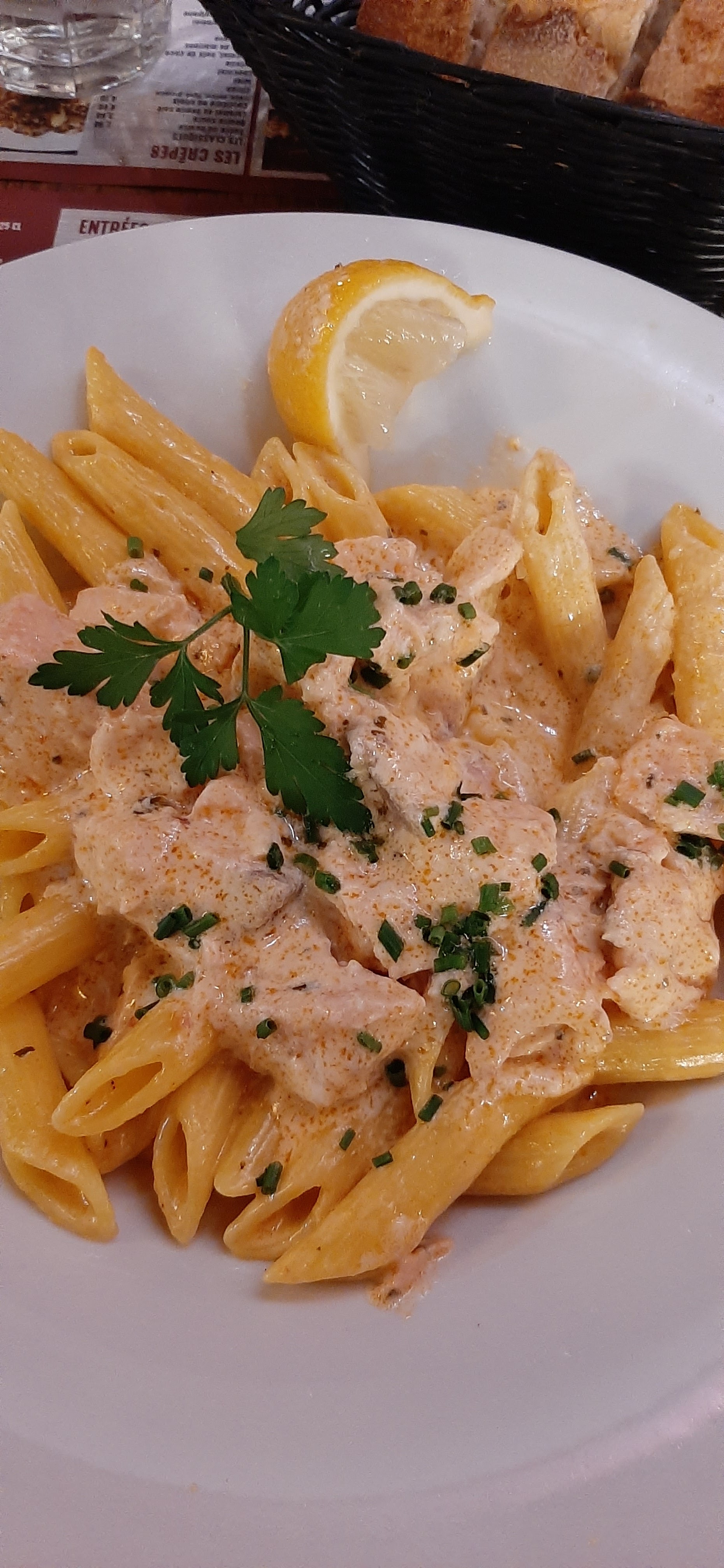 Restaurant agréable, service très rapide le midi ce qui est très bien, pour la qualité des plats je dirai que c est moyen : mon fils a pris une galette Compléte très bonne et moi un saumon/linguini moyen avec une crêpe sucrée moyenne. Je ressors avec un avis mitigé qui malheureusement ne me fera pas revenir.
