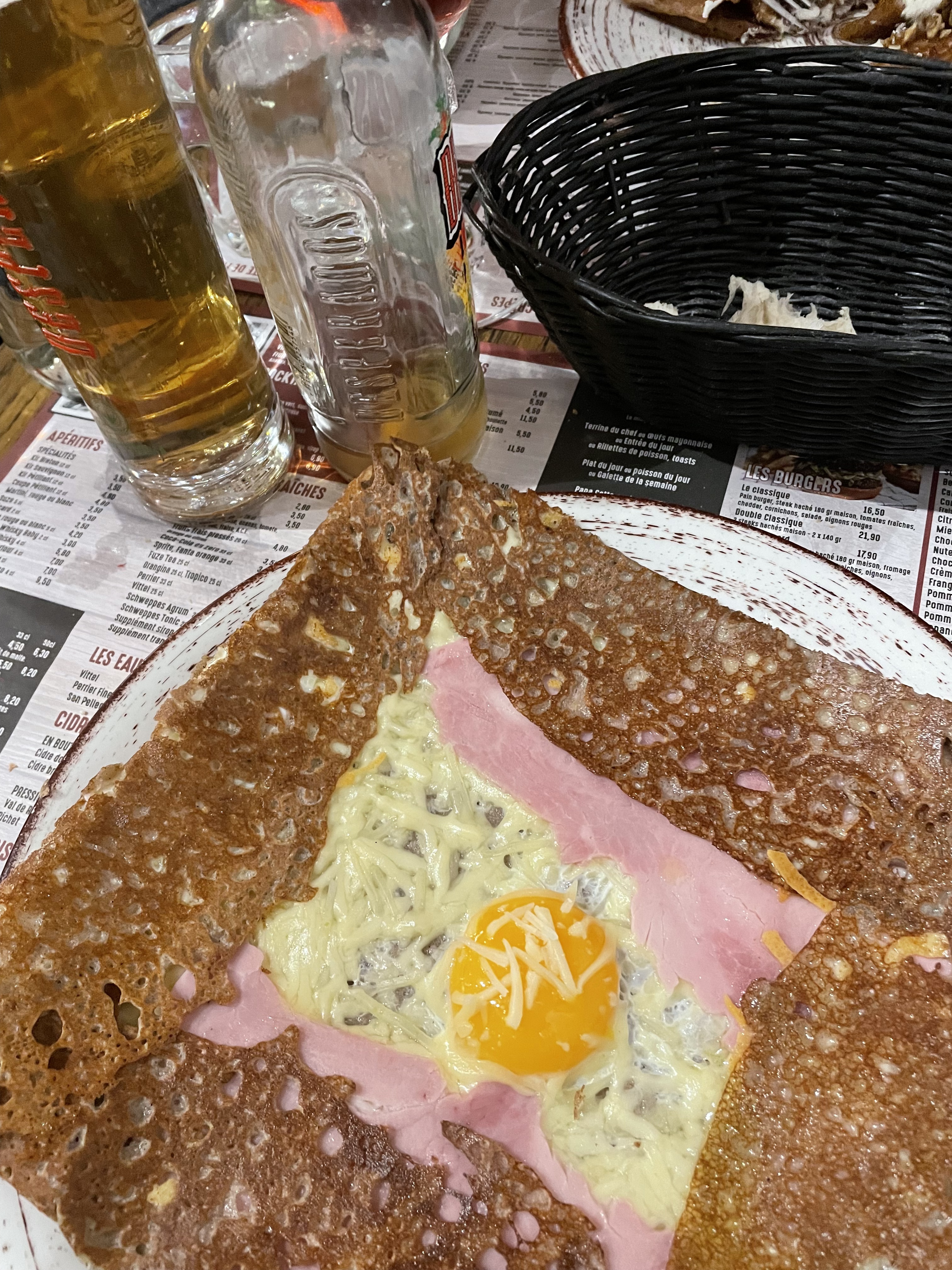 Très bon accueil, servi rapidement, personnel très agréable, mais la nourriture... j ai pris une formule galette/crepe/cidre. Le jambon de la galette n est pas présentable, la crepe au chocolat caoutchouteuse comme jamais et le chocolat fait à l eau, vraiment pas bon. Mauvaise expérience de crêpes réellement. Sinon bon point pour la déco et le personnel, la nourriture et bien c est du rapide, je ne pense pas que grand chose soit réalisé sur place...