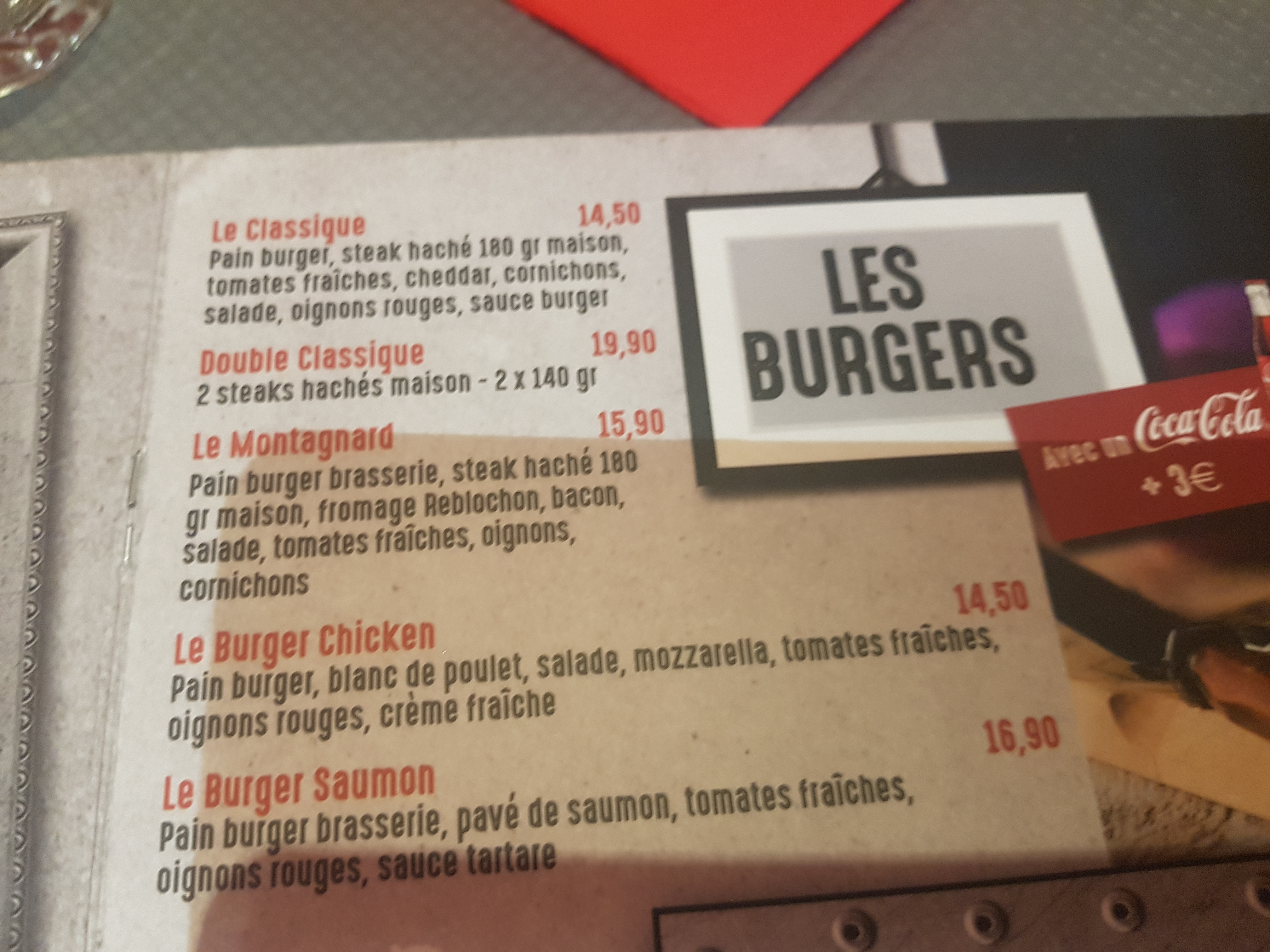 Nous avions commandé une galette tartiflette et une burger classique dans ce restaurant, c’était très bon néanmoins le service est vraiment à revoir. Nous avions commandé un BURGER CLASSIQUE, nous avions malheureusement reçu un double burger qui est à 25€ au lieu de 18€ la note n’est pas la même … de plus la serveuse nous a proposé une sauce, et lors de l’encaissement elle était à 1€, nous n’avions pas été prévenu du prix, et elle nous l’a proposé … nous avions fait part de toutes ces erreurs mais il n’avait pas l’air d’en prendre compte.