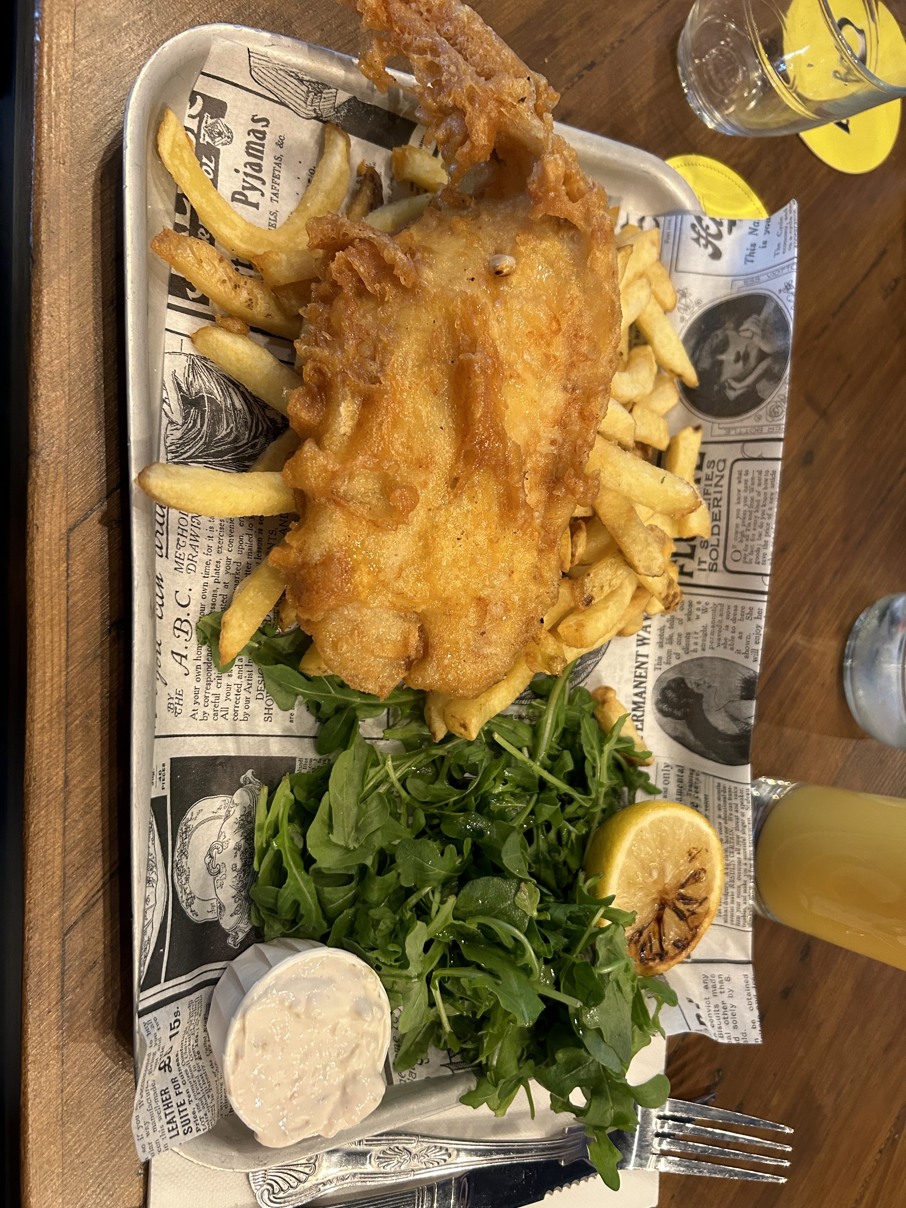 A fuir !!! Après avoir commandé un fish & chips je constate que le poisson a une forte odeur je questionne la serveuse pour savoir si c’est normal et me confirme que oui. Je lui demande de bien vouloir faire constater mon plat par le cuisiner qui reconnaît que le poisson a une odeur anormal. Servir un plat avec une forte odeur de poisson avarié je trouve ça scandaleux.
