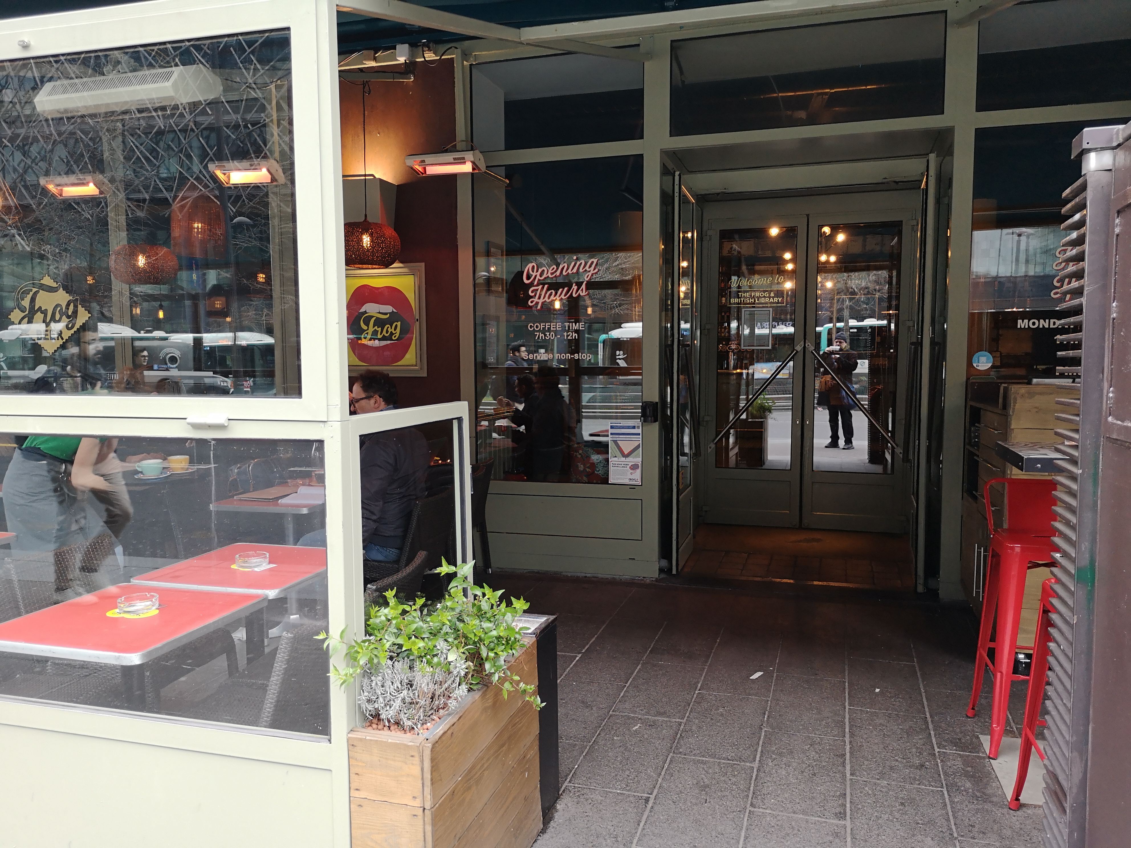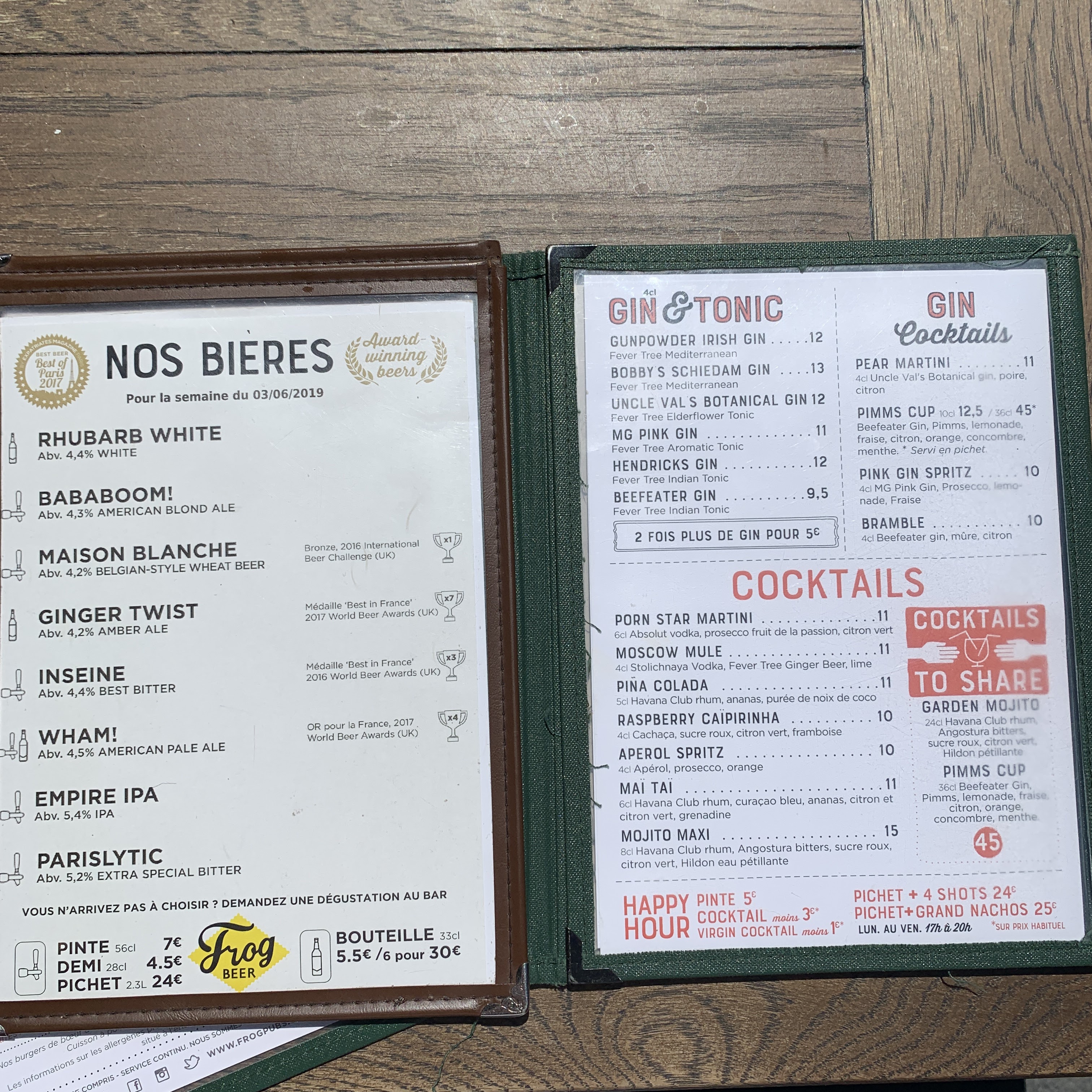 La serveuse , très désagréable qui impose client de partir en posant l'addition sur la table et demandant d'encaisser tout de suite. J'apprécie ce pub plus de tous les pubs sur paris. Mais c'était une très mauvaise expérience pour une fois chez frog en tant qu'une cliente fidèle.