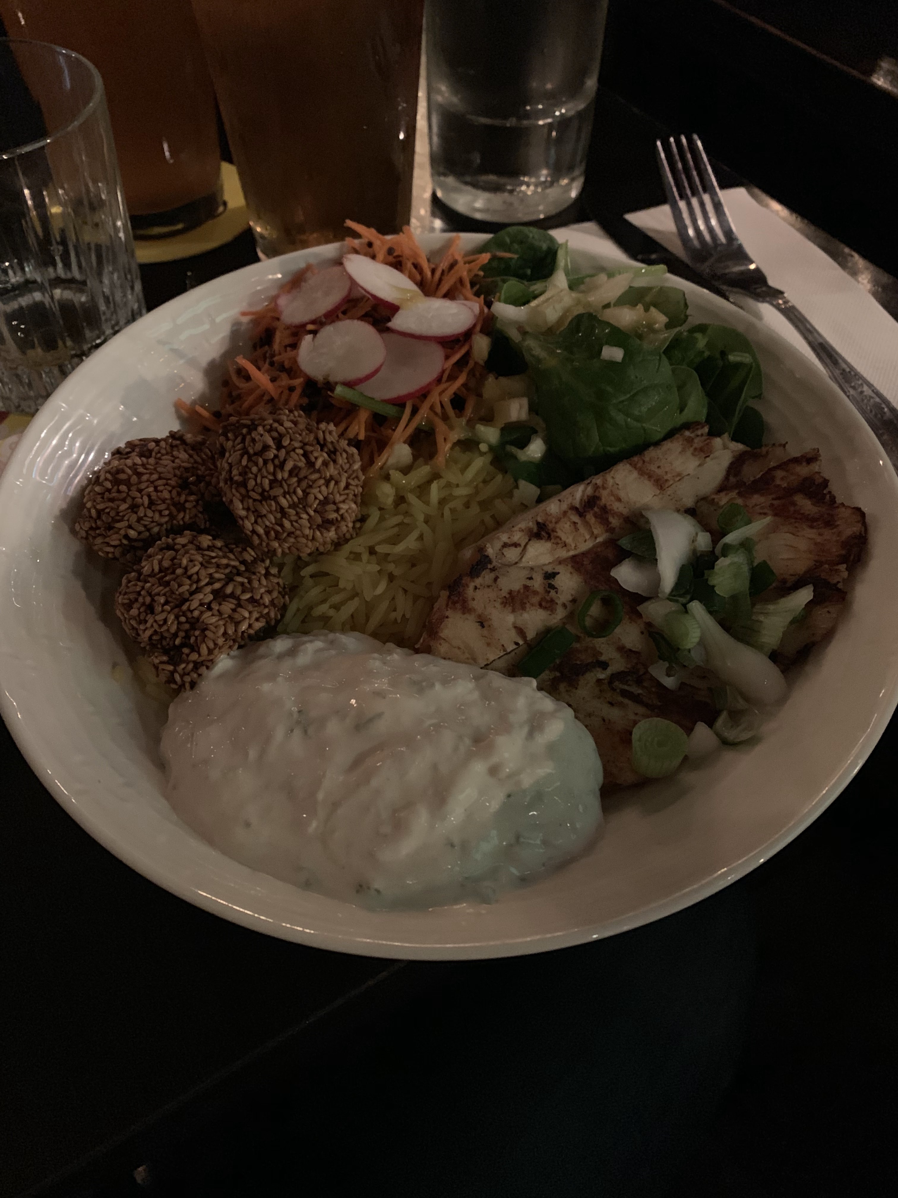 Restaurant-bar très fréquenté. Le happy hour est très attractif, les boissons ne sont pas très chères. La musique et l'ambiance sont bonnes. Le chicken burger est bon, le poulet est croustillant. Le bun est un peu sec. Les frites sont bien croustillantes et chaudes. Le chicken tikka est bien assaisonné, les sauces sont variées. Si vous cherchez un restaurant avec un playlist des années 2000, alors c'est fait pour vous!
