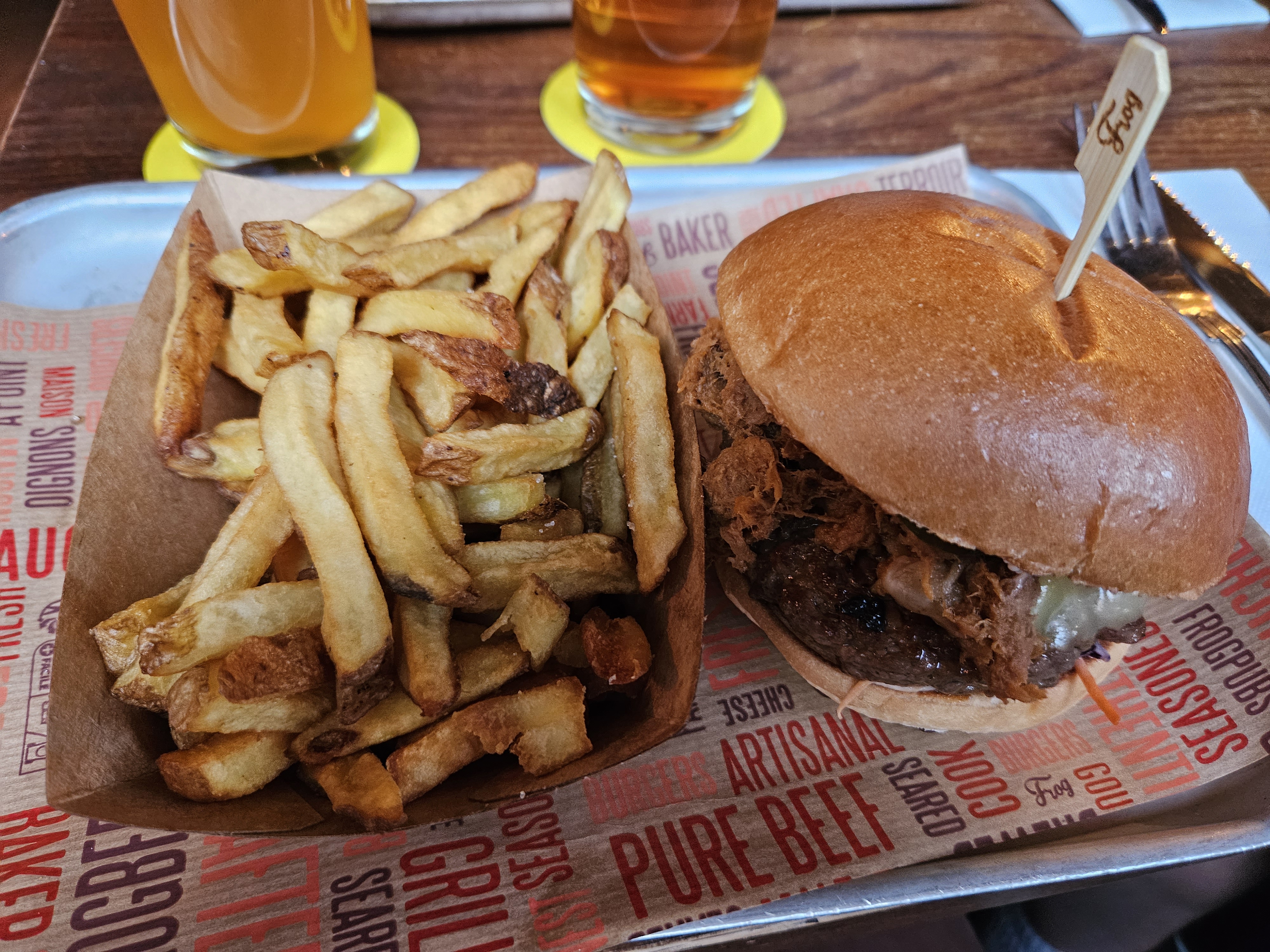 Je vais à ce Frog depuis plus de 5 ans et le staff est toujours aussi professionnel, chaleureux. La nourriture est toujours aussi exquise, mention spéciale pour les célèbres mozzarella sticks. Ils diffusent les matchs de foot, rugby, GP de F1, etc sur grand écran. Le rapport qualité prix est plus que raisonnable. Je recommande vivement!