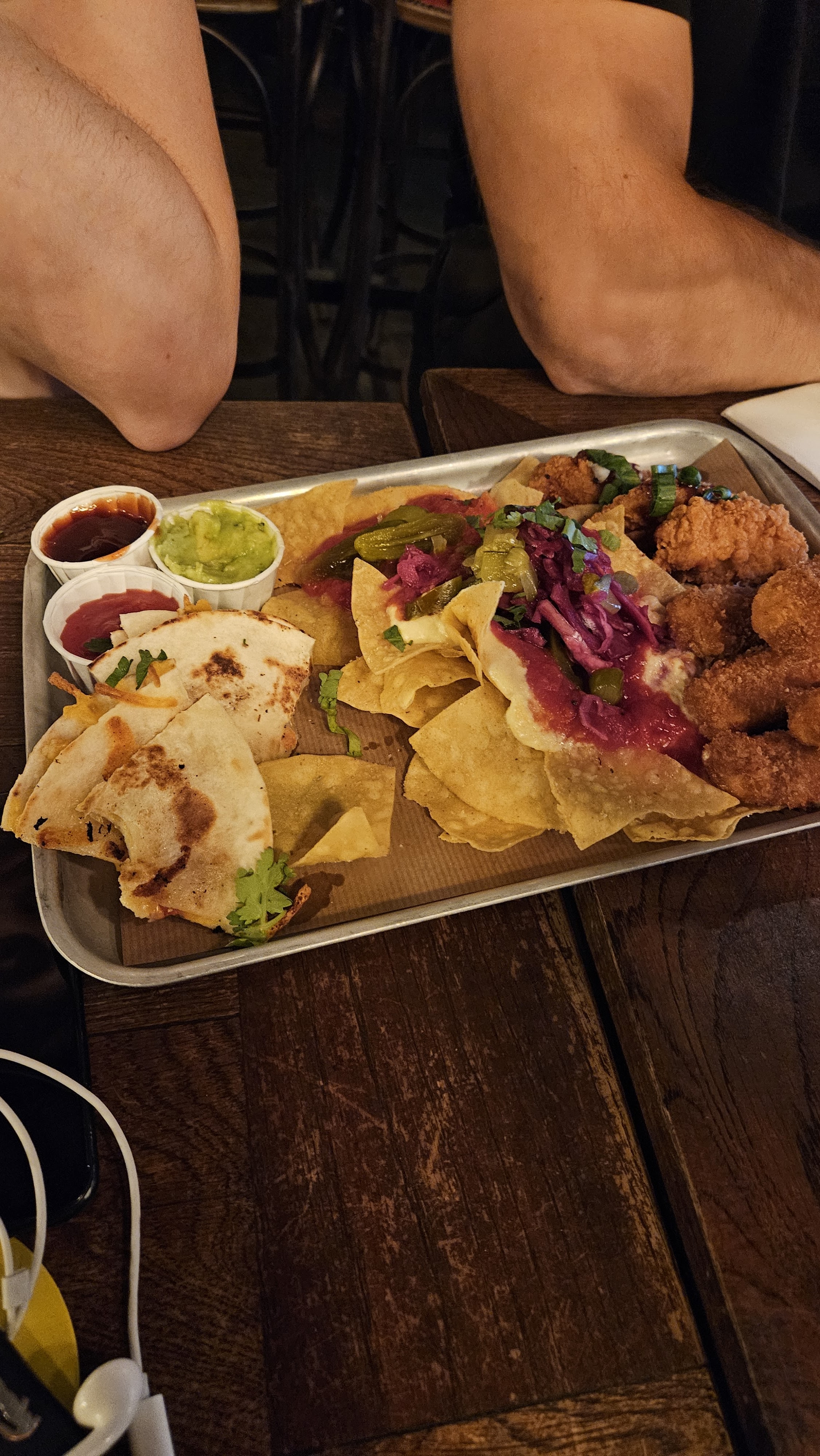 Valeur sûre pour boire un verre et partager une planche vers BNF. Dommage que les prix aient autant augmenté. Le service était gentil mais aléatoire (la serveuse ne croyais pas qu'on pouvait commander des loaded fries avec un supplément, la salade remplaçant les frites n'est jamais arrivée).