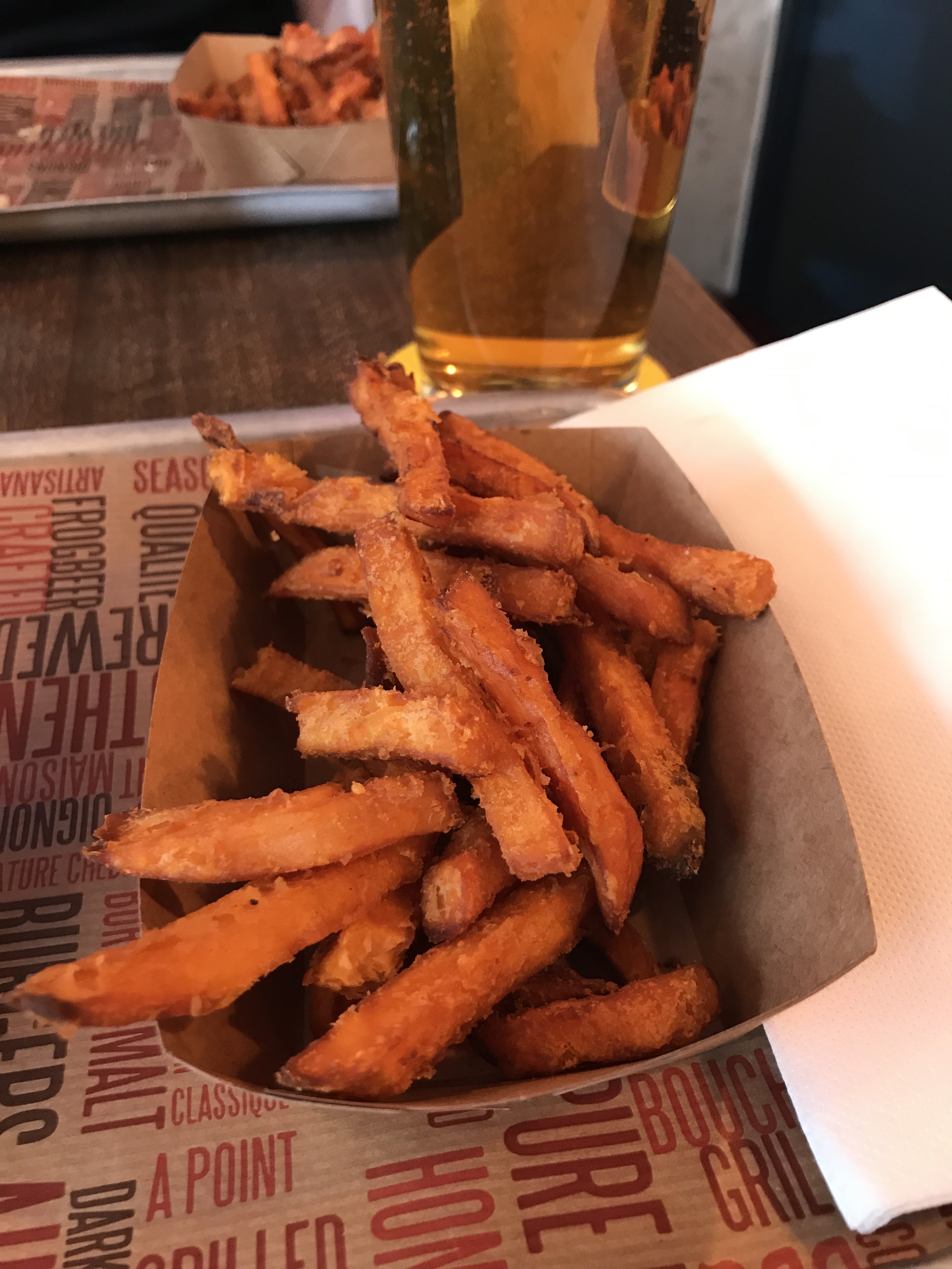 Bonne surprise au coin de la rue, nous avons très bien mangé. Mention spéciale pour le ice tea et les frites patate douce. Serveuse très sympa avec un très bel accent, et déco super !