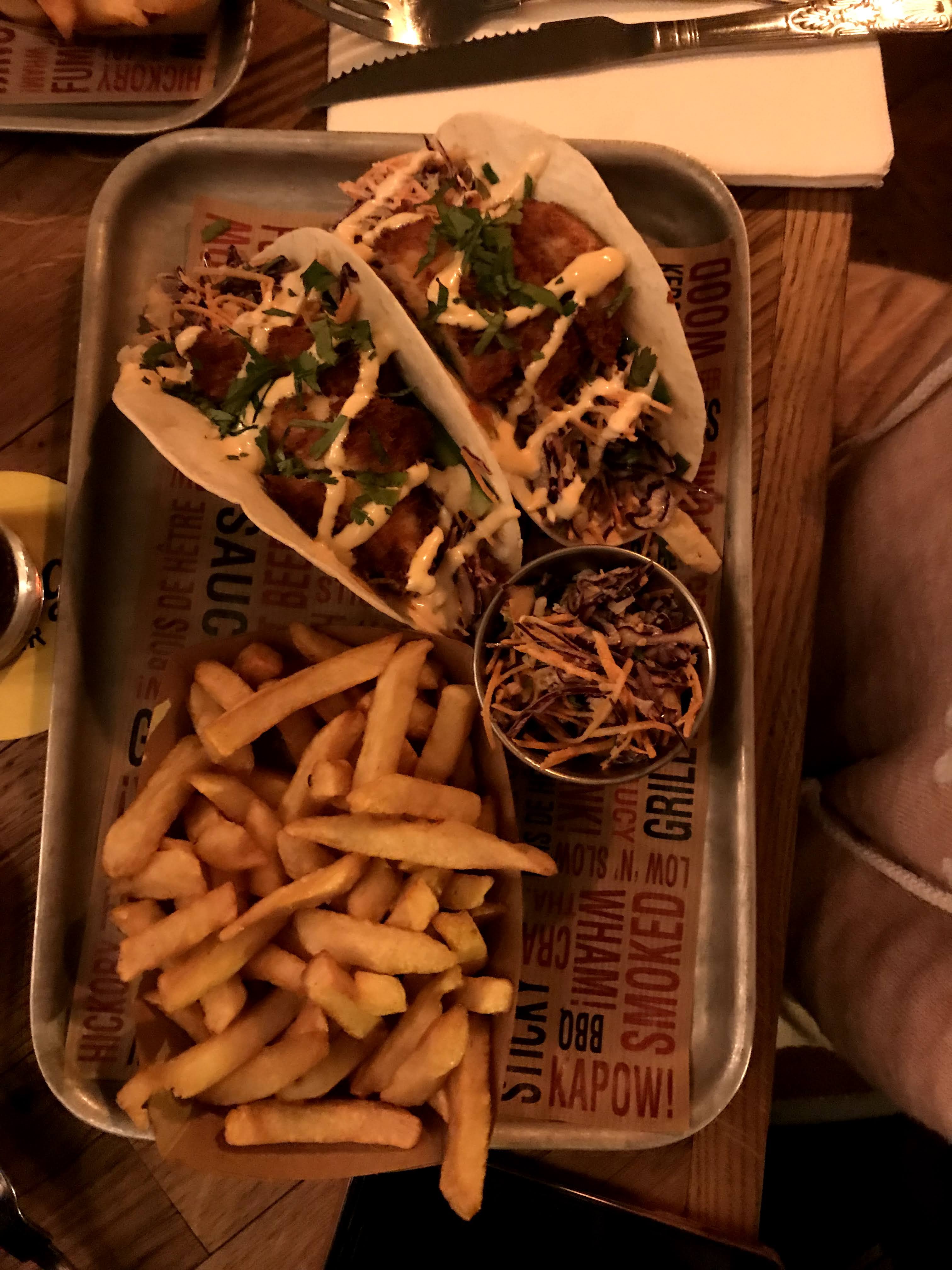 La bière est bonne, le service est sympa et à l’écoute. Le cadre est bien, il y a de la bonne musique, peut être un peu fort en début de soirée. Pas simple pour s’entendre parler. Niveau nourriture on y est pas, les frites sont farineuses et sèches.