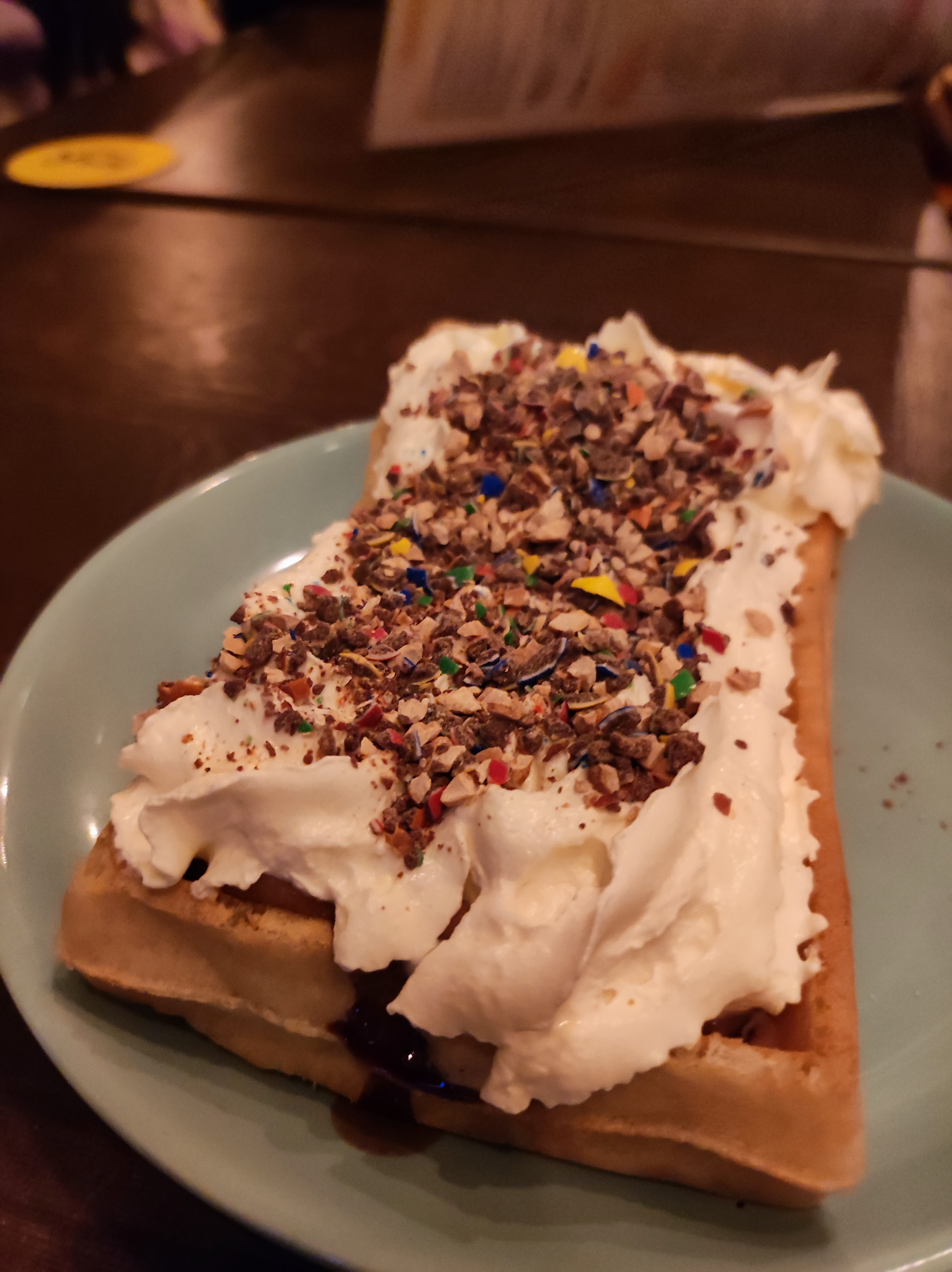 Nourriture froide, sans goût, sans odeur, juste de la nourriture en plastique (c'était des tacos, des crêpes et des nachos végétaliens qui n'étaient pas réellement végétaliens). J'ai aussi pris du chocolat chaud fait maison pour 6 € mais en fait c'était du Nesquik😃 Je ne recommande vivement pas cet endroit.