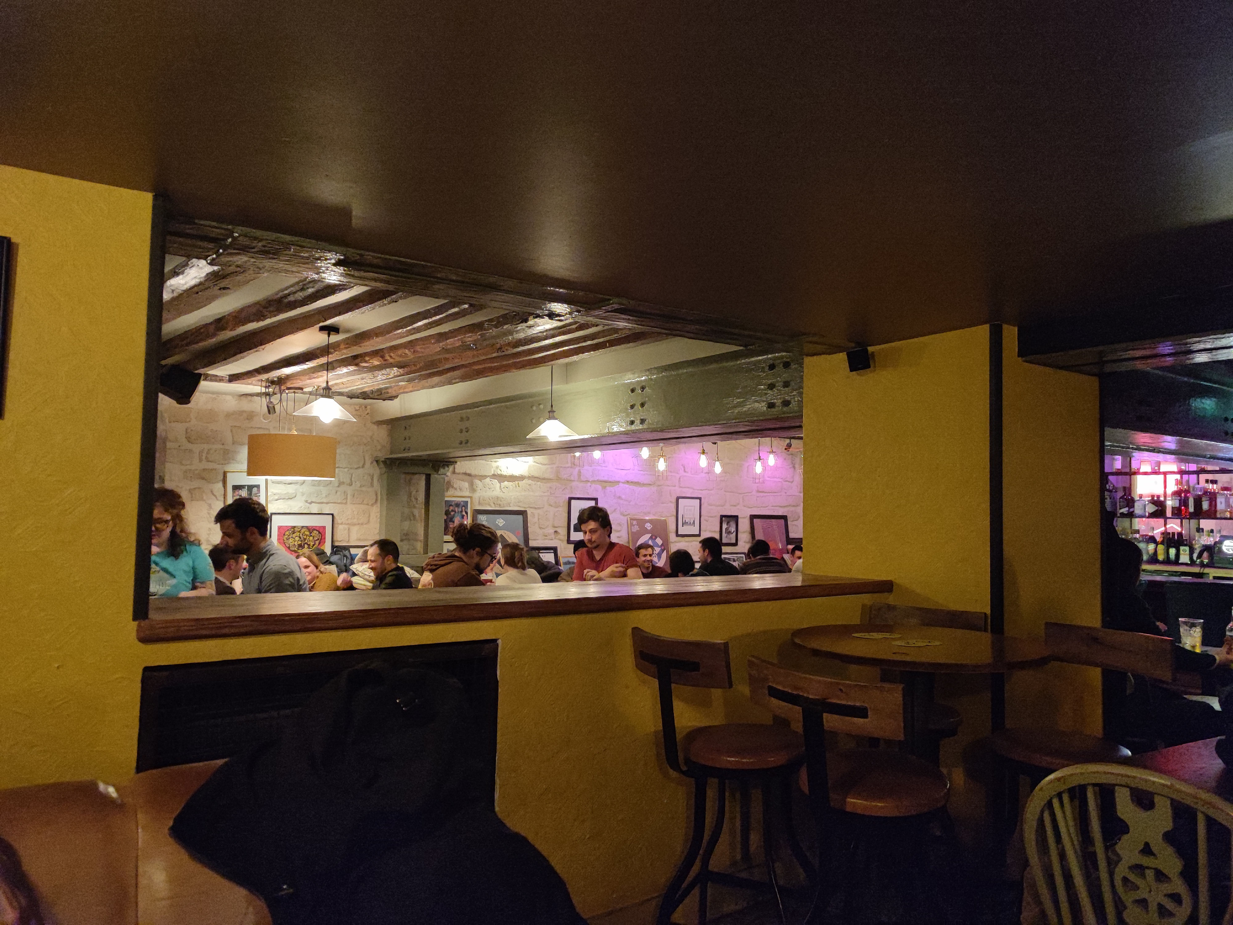 Pub sympathique anglais avec ambiance chill en journée et qui bouge le soir. Bon choix de bière et slices à partager. Happy hour en semaine avec prix pas chers du tout. Je recommande entre amis