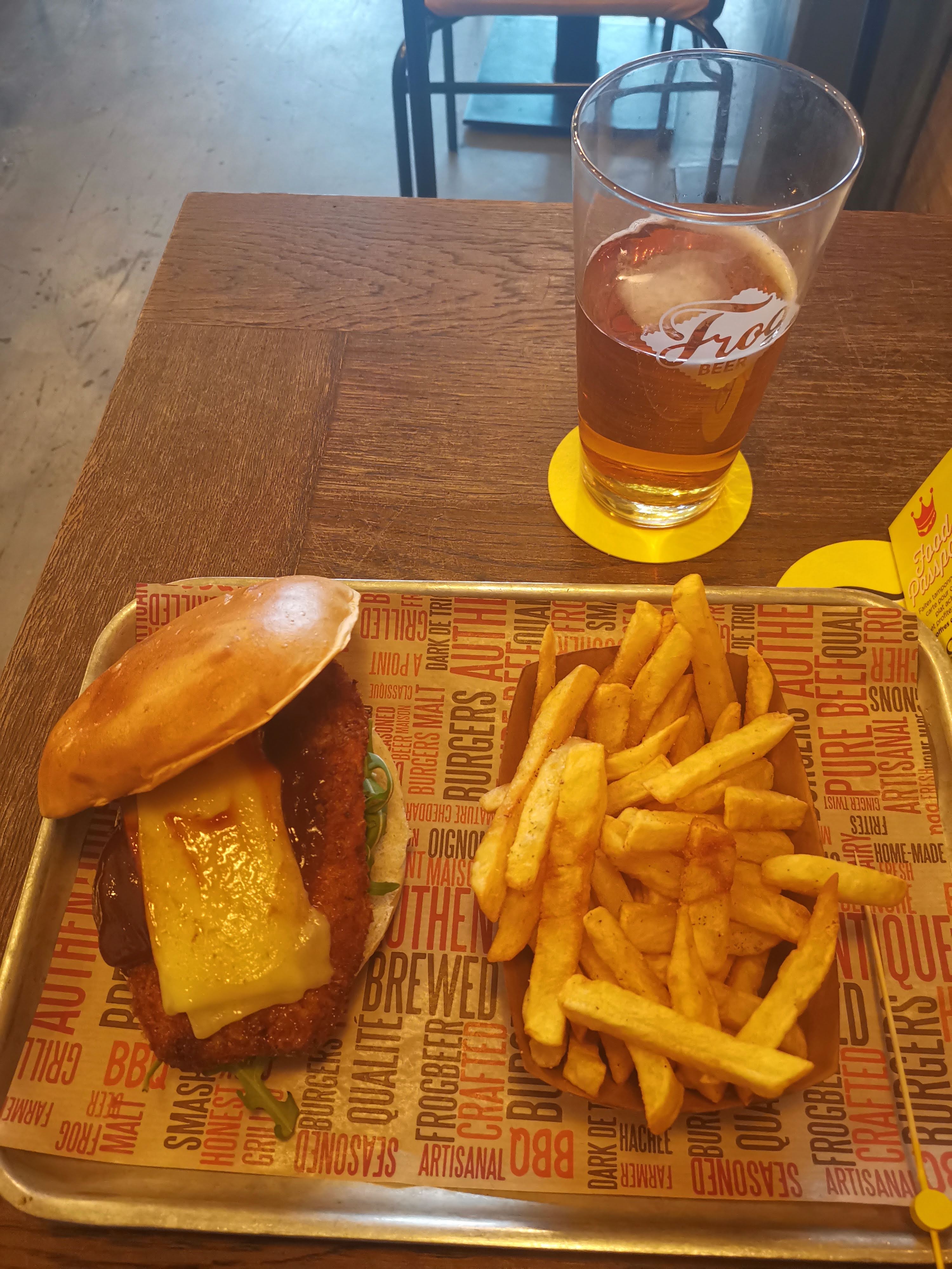 Le lieu est très sympa ambiance Pub, les bière maisons sont bonnes, malheureusement concernant la cuisine, nous avons pris la formule midi et le burger au poulet était vraiment classique et un peu tristounet.
