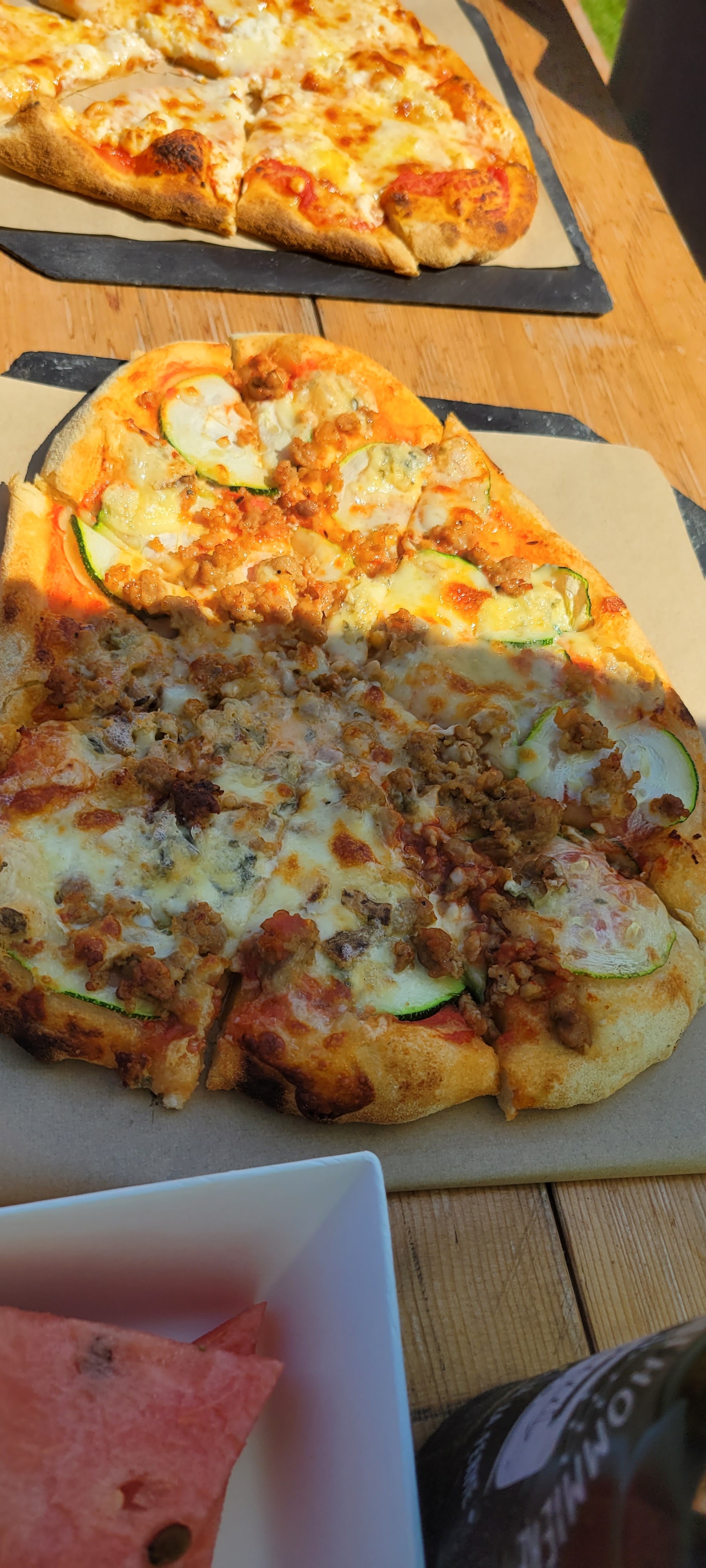 Quelle ambiance géniale et détendue !!! Vous vous asseyez sur une belle prairie et dégustez une excellente pizza chaude et croustillante. Pour le dessert, nous avons mangé des biscuits et bu un expresso. C'est vraiment quelque chose de différent !! Un grand merci aux propriétaires!