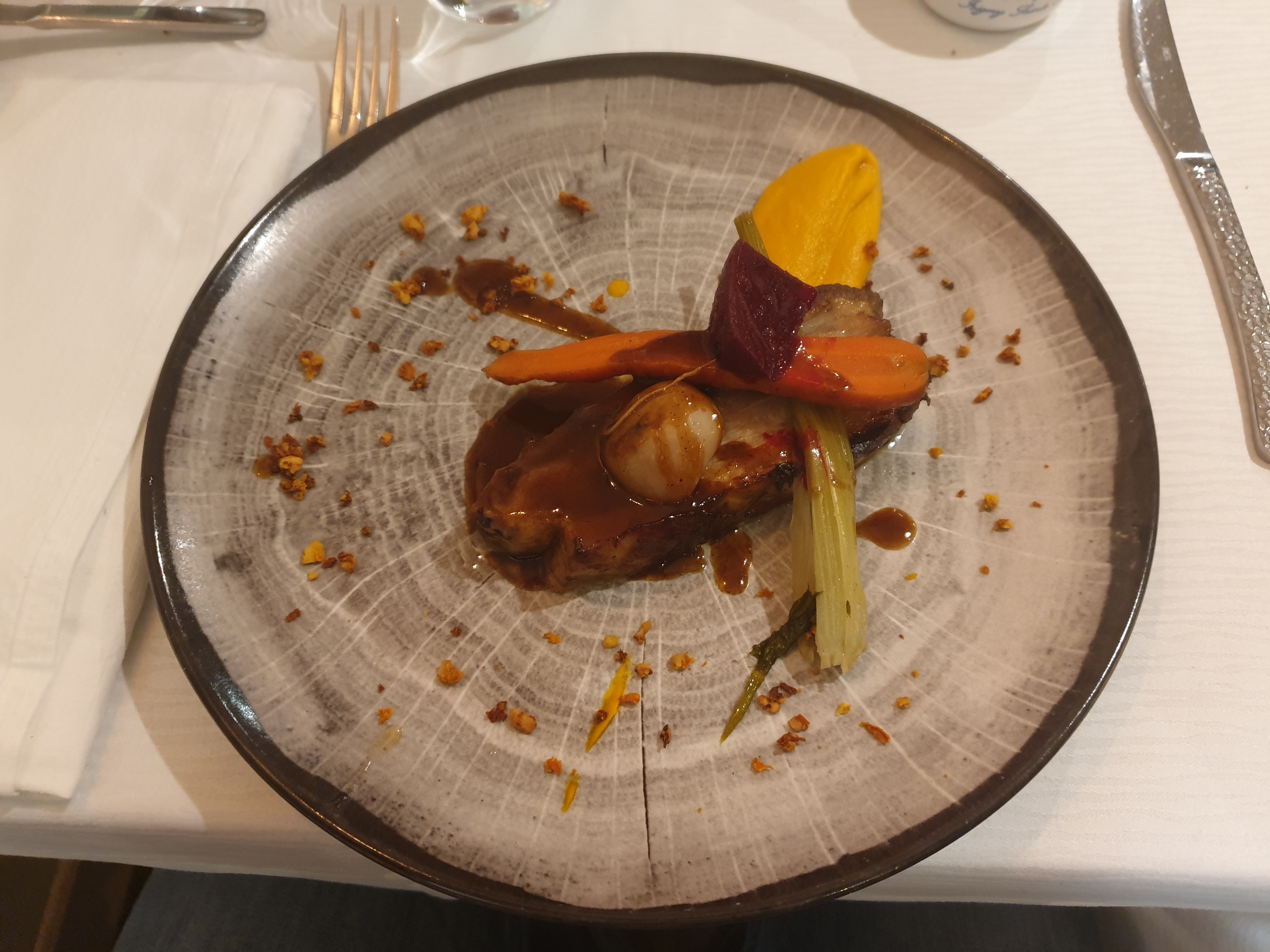 Très bon repas et serveuse très sympa Petite attention pour notre anniversaire de mariage très appréciée