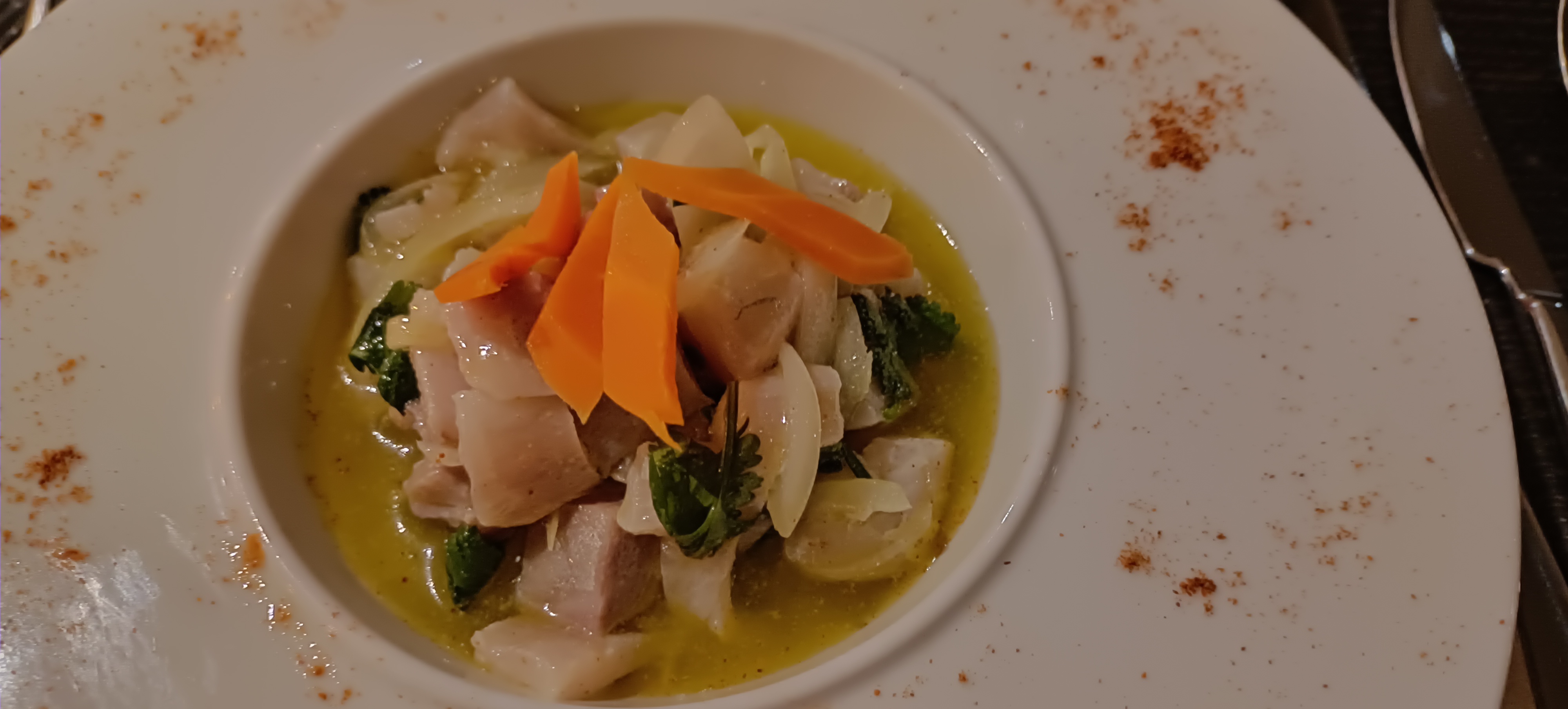La cuisine est excellente et assez élaborée. L'établissement offre un large choix de boissons et de vins. L'équipe est très professionnelle et accueillante.