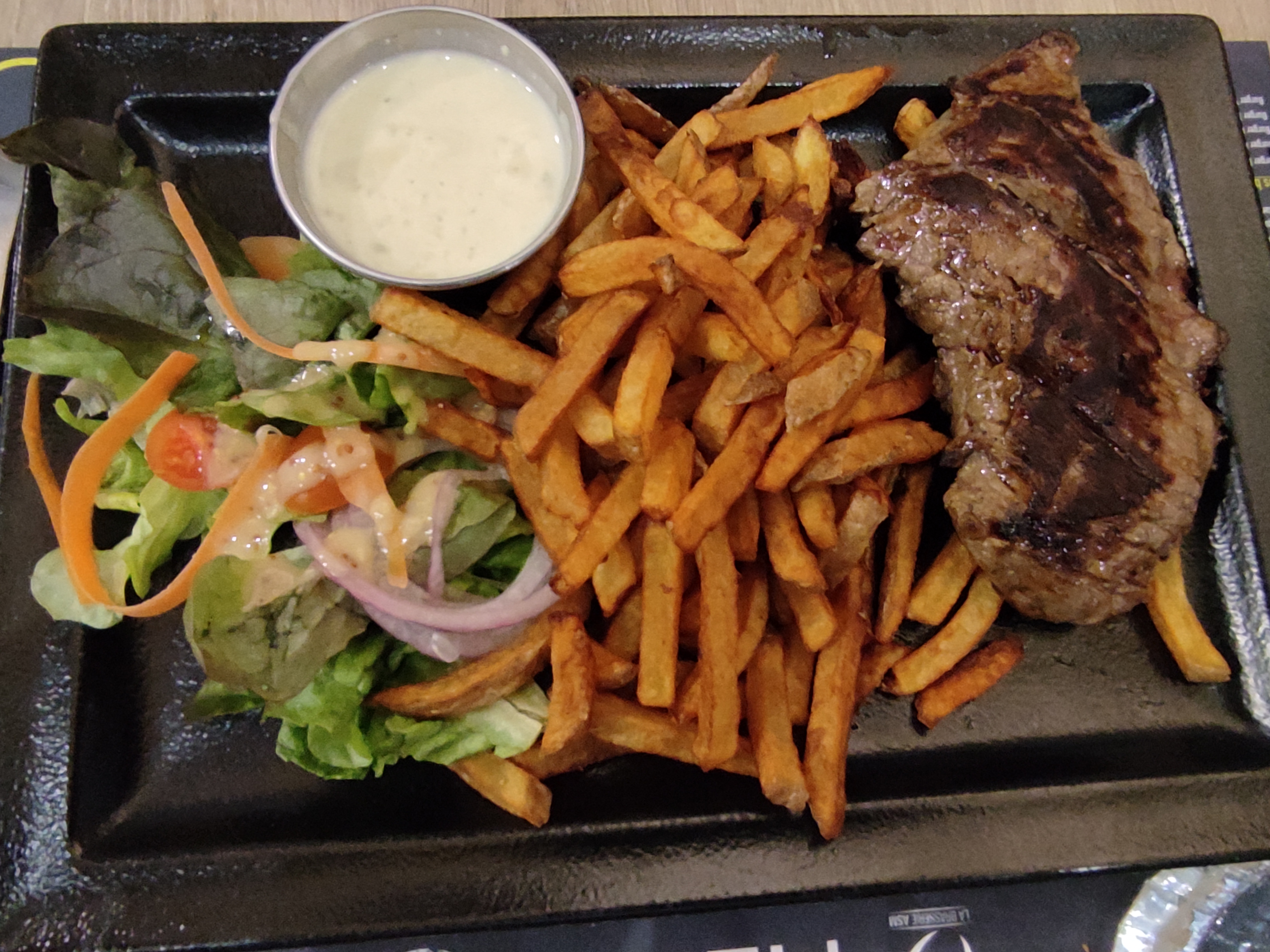 Première expérience et pas déçue ! Nous étions deux et hors match. L'entrée : salade chèvre et lardons était très bonne et la bavette d'aloyau avec frite était bien copieuse. Le seul bémol: la rapidité d'arrivée du plat alors qu'on avait tout juste fini l'entrée. J'y retournerais ☺️