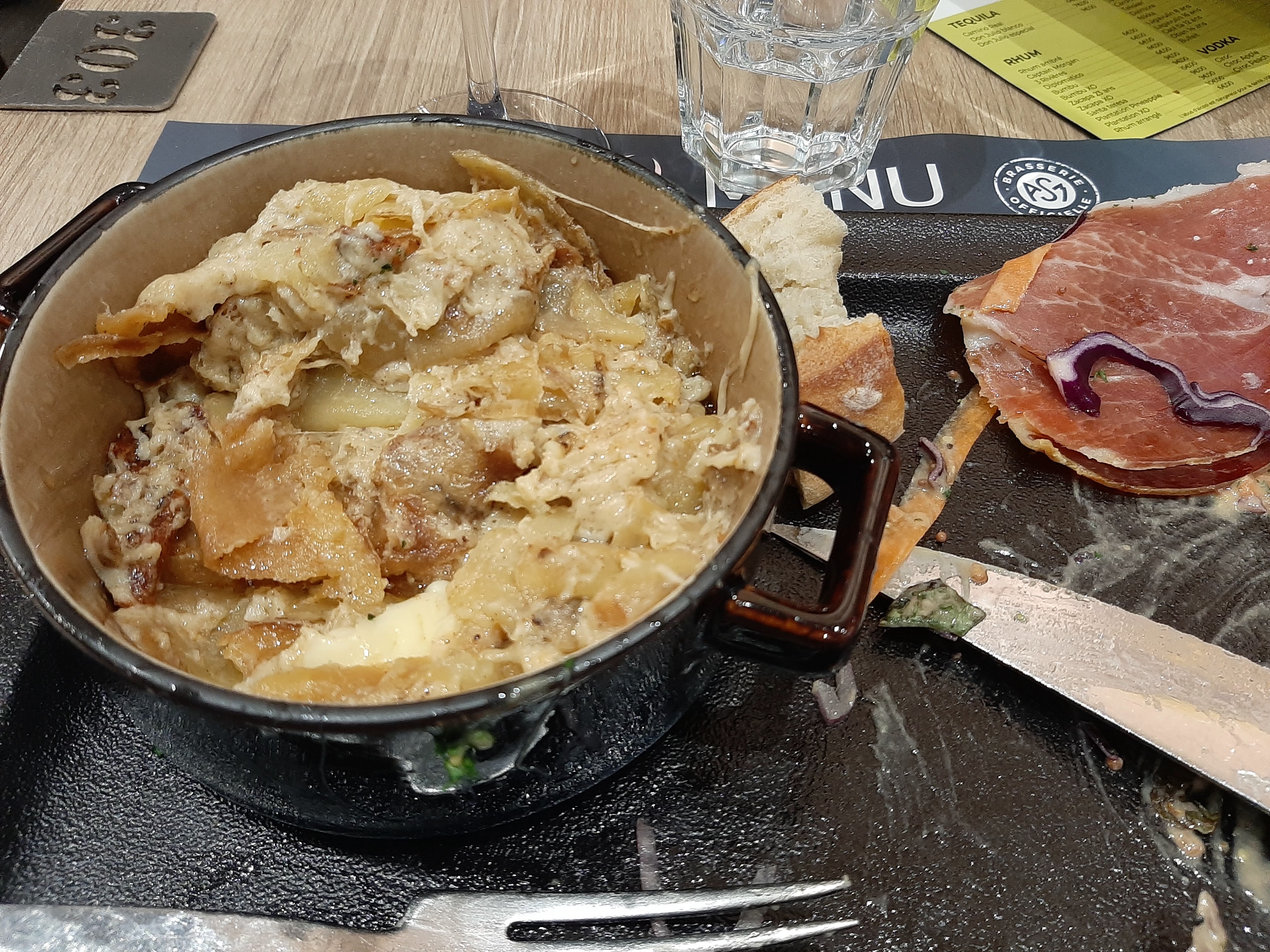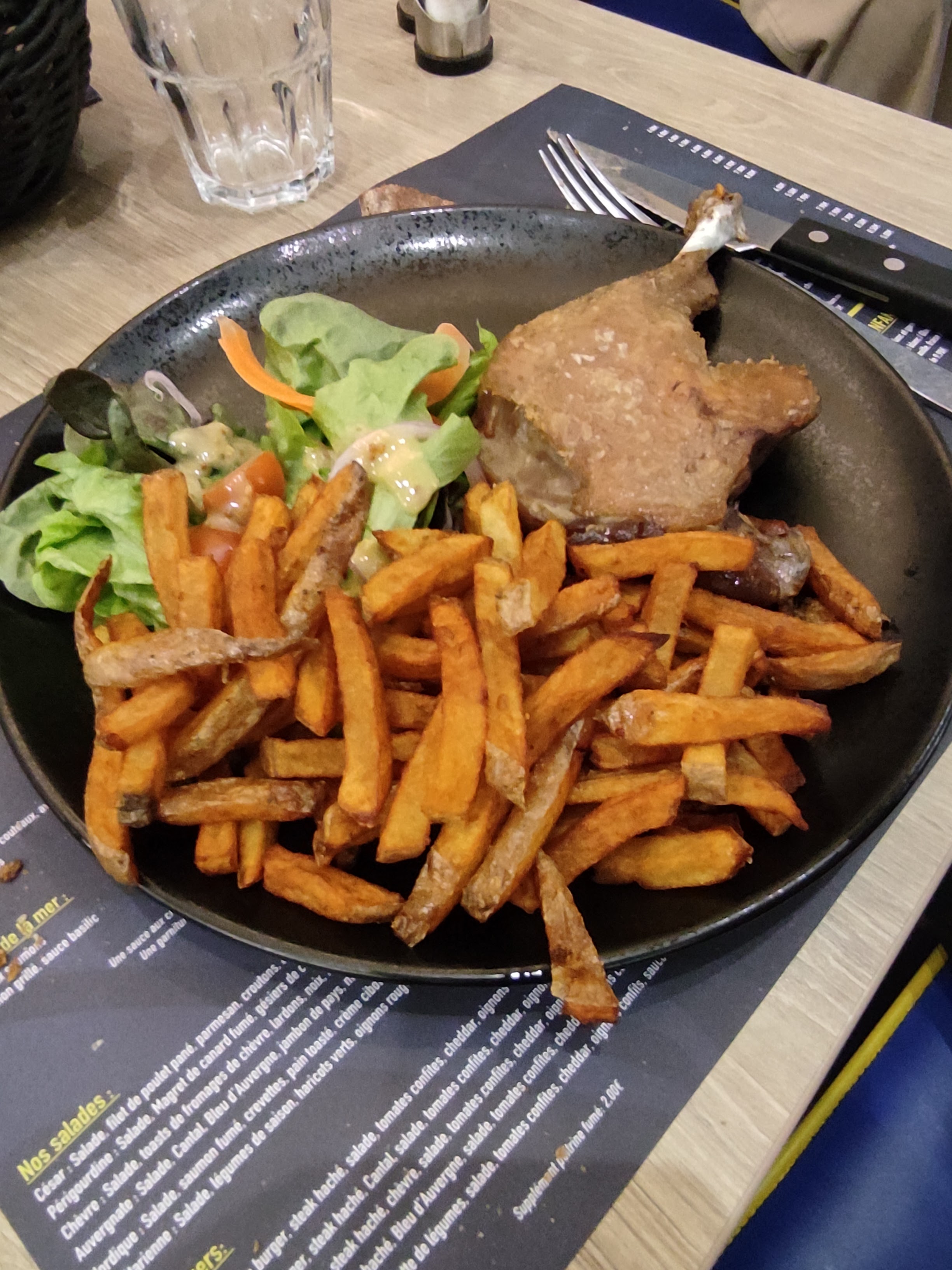 Qualité correcte mais rien d'inoubliable , le service manque un peu de convivialité, le sourire avec le masque ça marche aussi... 4 EUR la bière pression de 25 cl... Vraiment ? J'ai opté pour une truffade accompagnée de jambon sec auvergnat : dommage que la crème soit trop présente et que le jambon semble avoir été coupé à l'avance, certaines tranches sont sèches et d'autres moelleuses... En bref il y a mieux au même prix si on se donne la peine d'aller en ville. Je le saurai pour la prochaine fois.