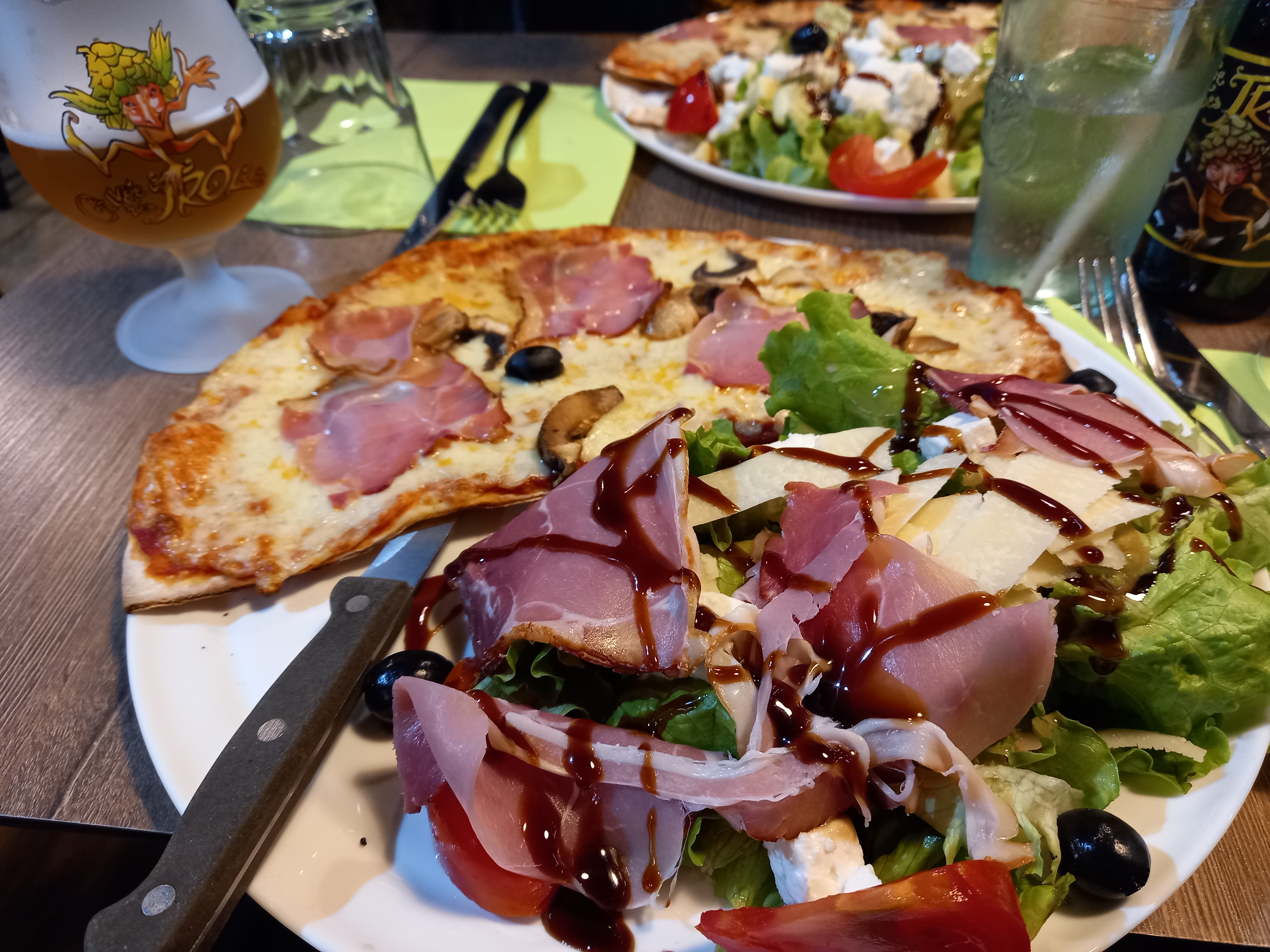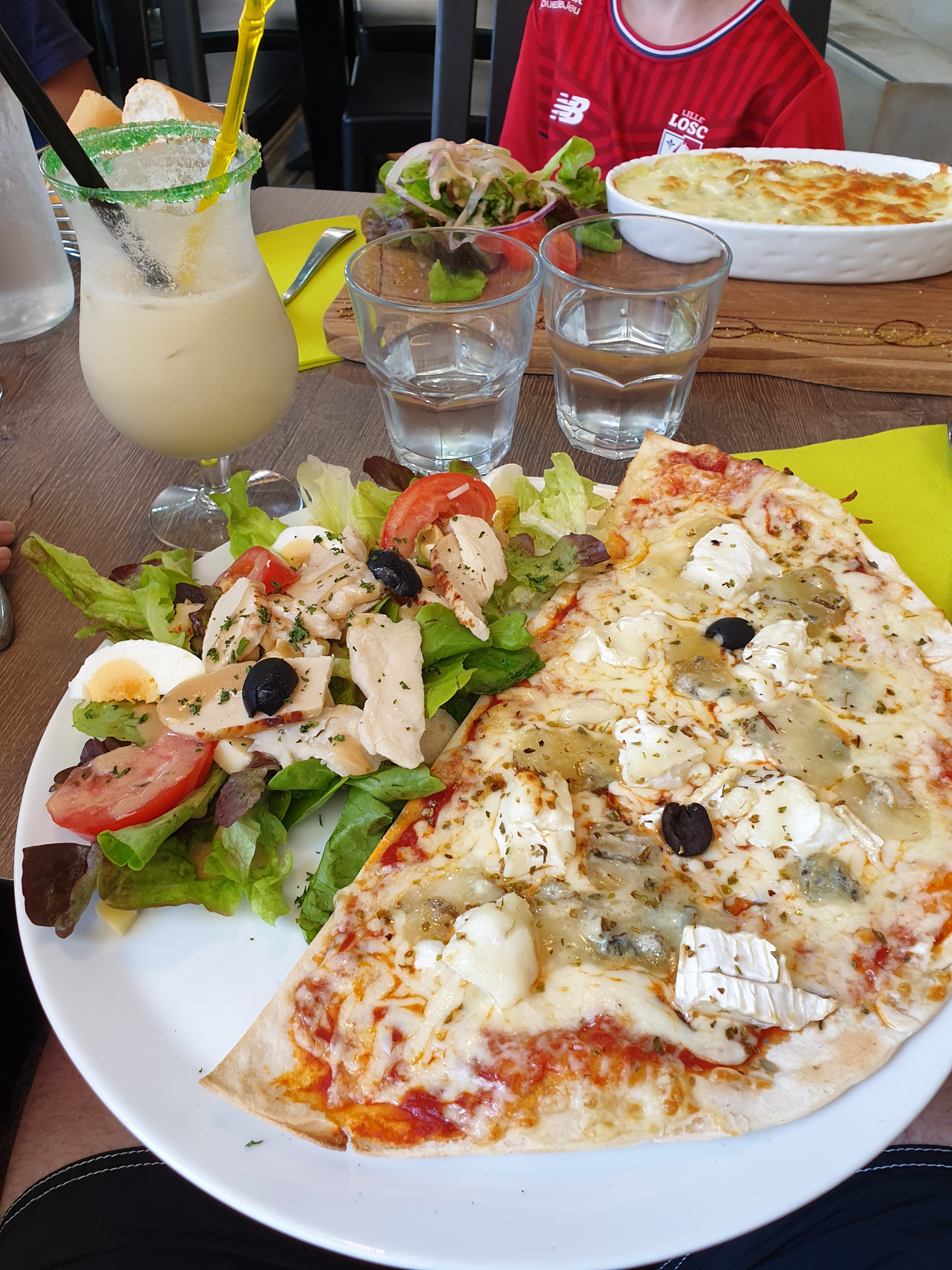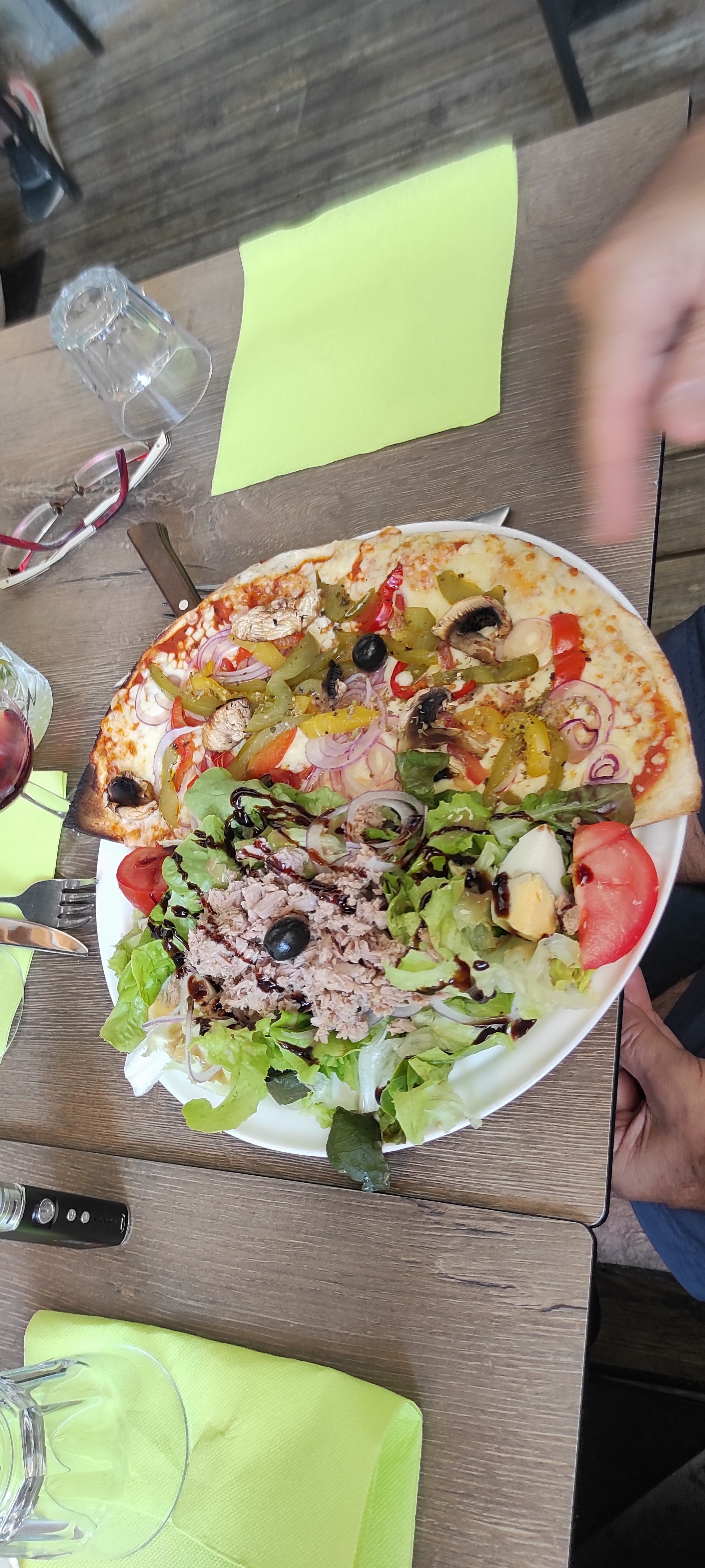Très bon repas, pizzas délicieuses, tagliatelles également. Pour finir le repas, un délicieux café gourmand. Le tout sur une terrasse brisée. Par cette chaleur un gros point positif