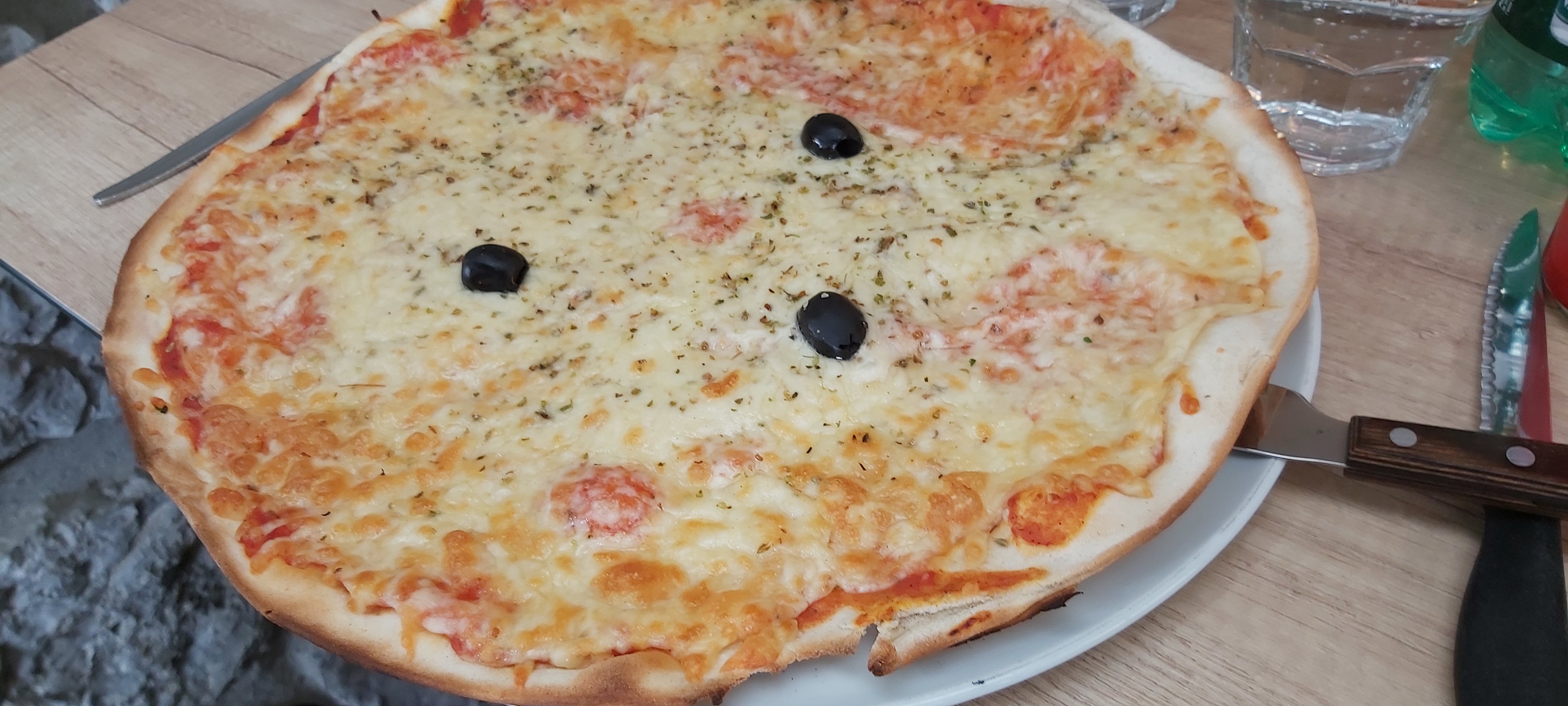 Pas terrible, pizza ressemblant à des crêpes trop cuites, certes bien garnies mais je n appelle pas ça une pizza ! Le serveur n a rien arrangé, aimable seulement avec ceux prenant des menus plus chers et pressé de nous servir même avec une salle a moitié vide.. Je ne recommande pas.