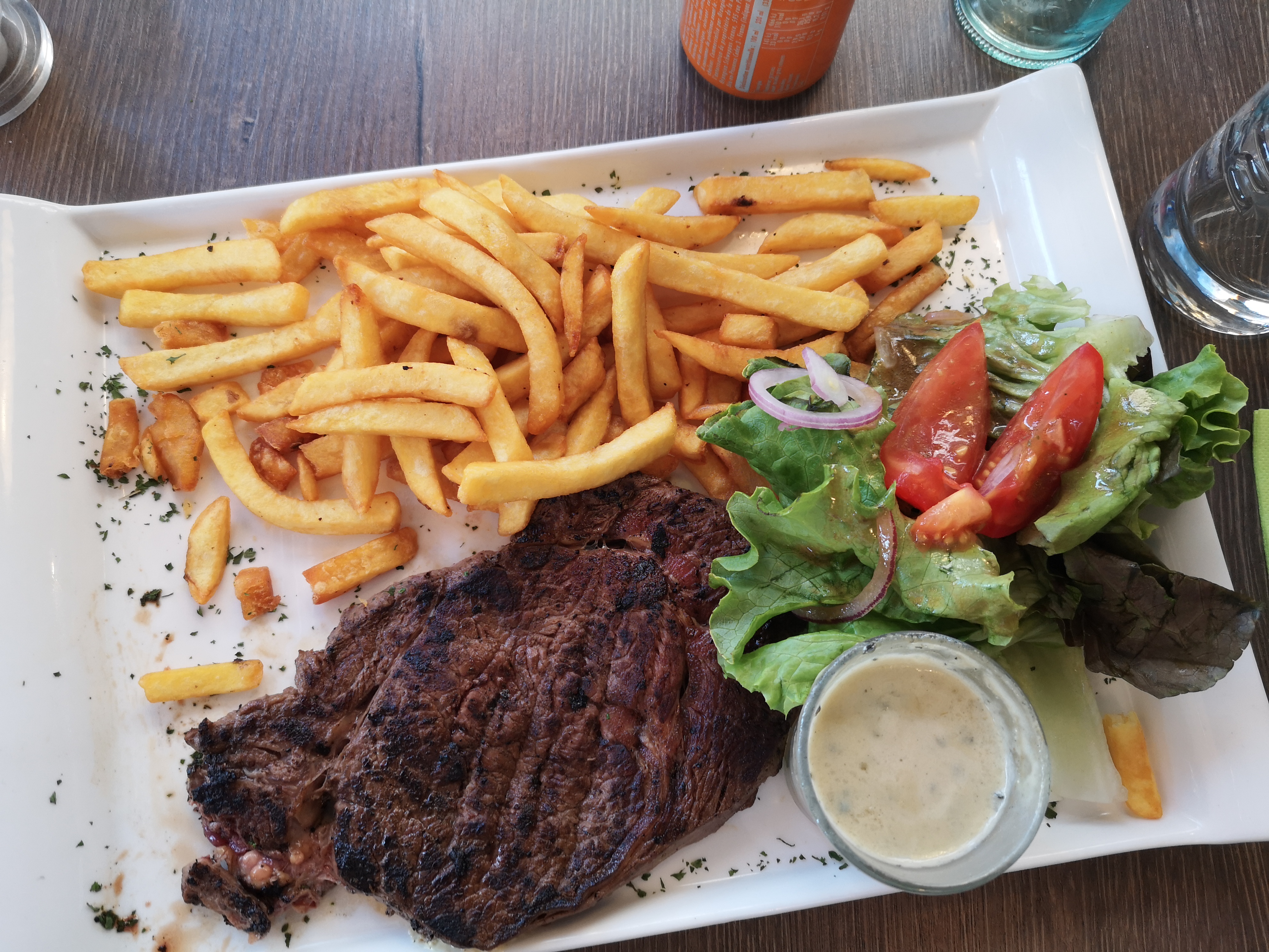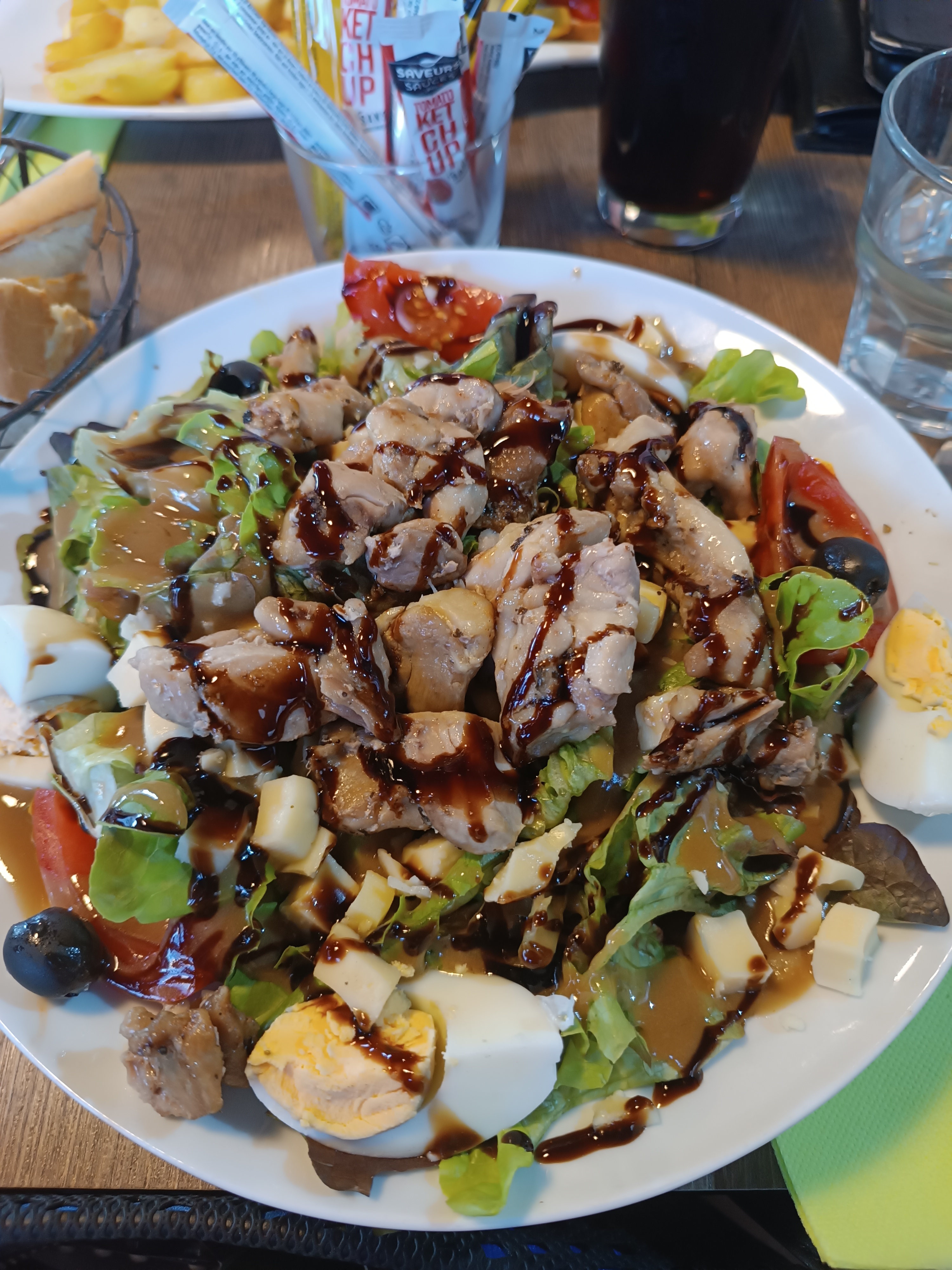 Enfin un établissement où l'accueil est sympa. Après un peu d'attente nous avons une table sur la terrasse (à notre demande). Une carte simple mais largement suffisante, et surtout des produits frais, des plats chauds et des couverts propres... Ce qui n'est pas le cas dans tous les restaurants 😂 Encore merci Je recommande vivement 👍👍👍